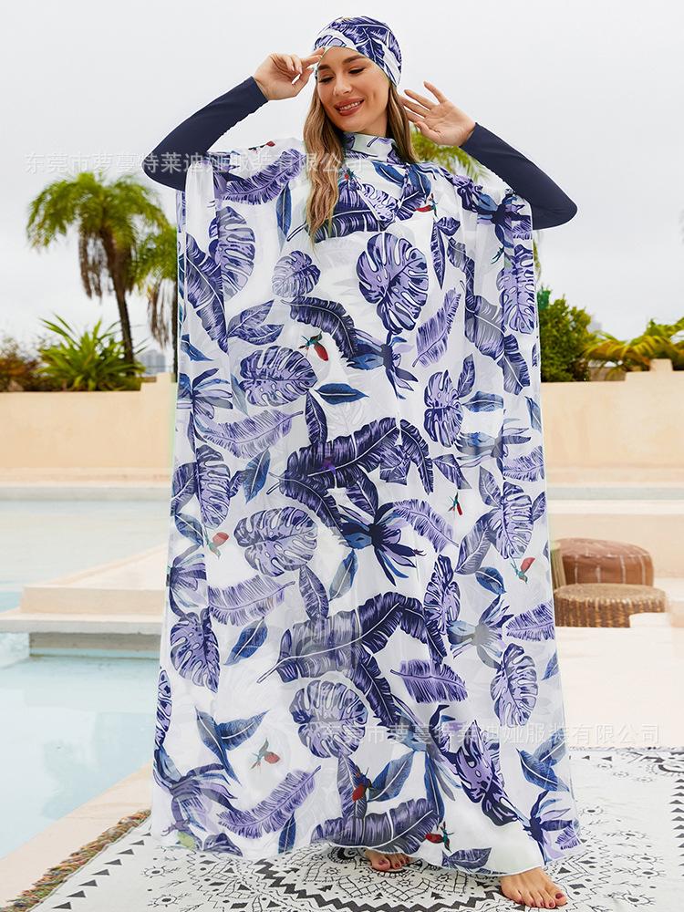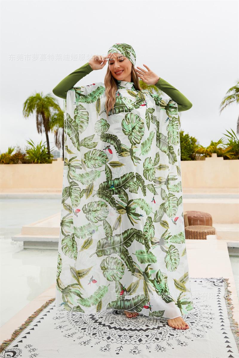 Musulmanes del Sudeste Asiático Rodeados Traje de Baño Conservador de Cuatro Piezas para Buceo Sombreado Surf Protección Solar de Playa Traje de Baño Dividido