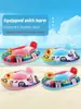La parte roja tiene una trompeta y un silbato. Al presionarla con la mano, el coche y el barco silban, lo cual es muy realista.