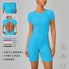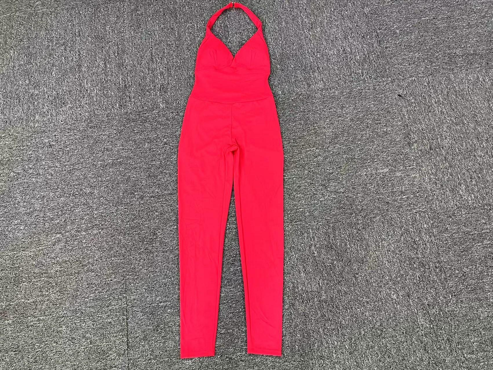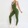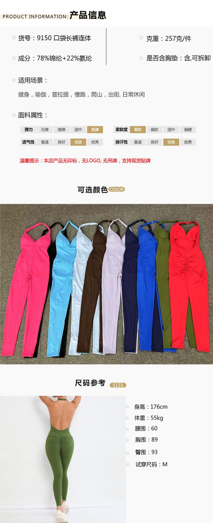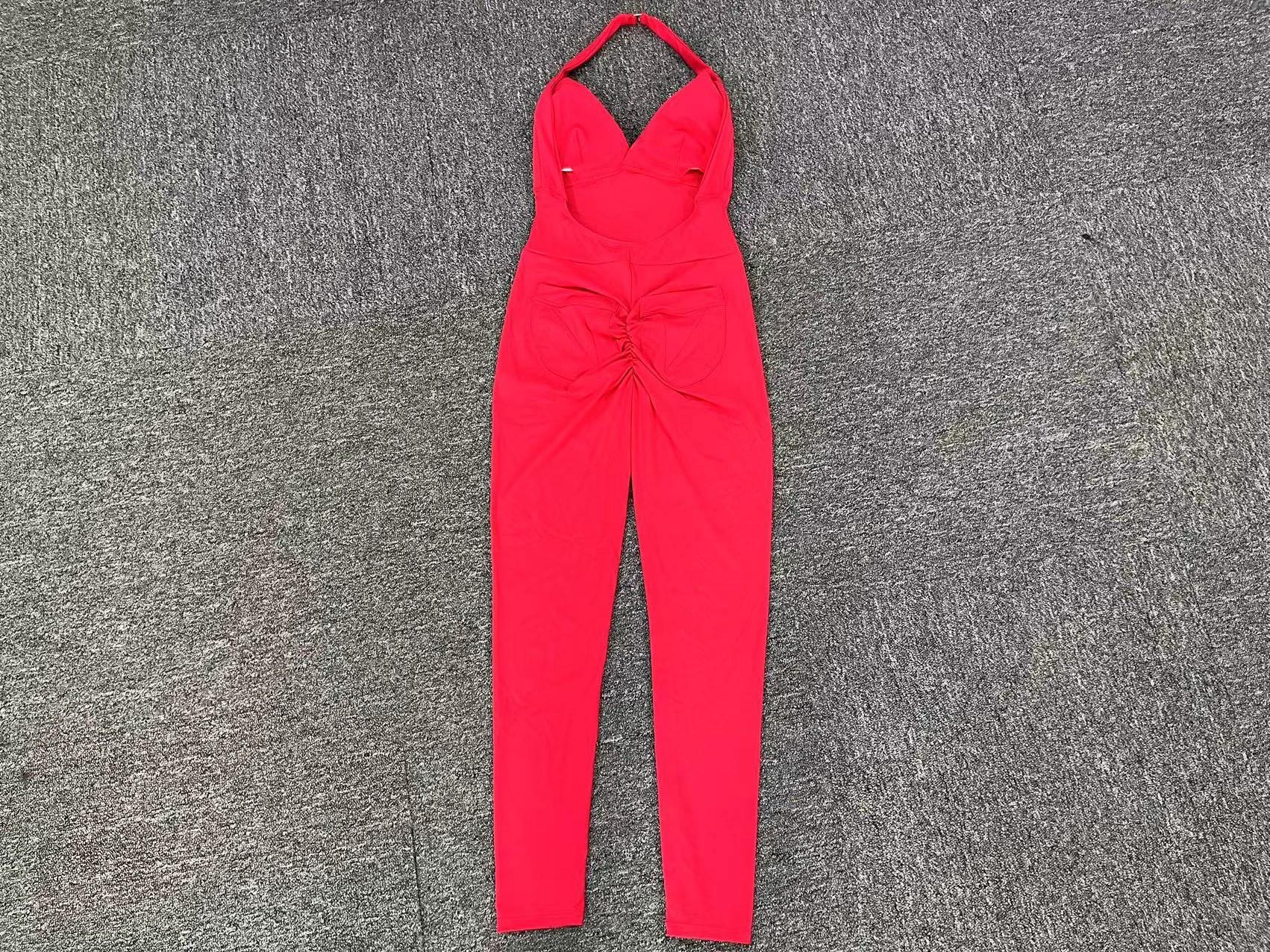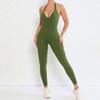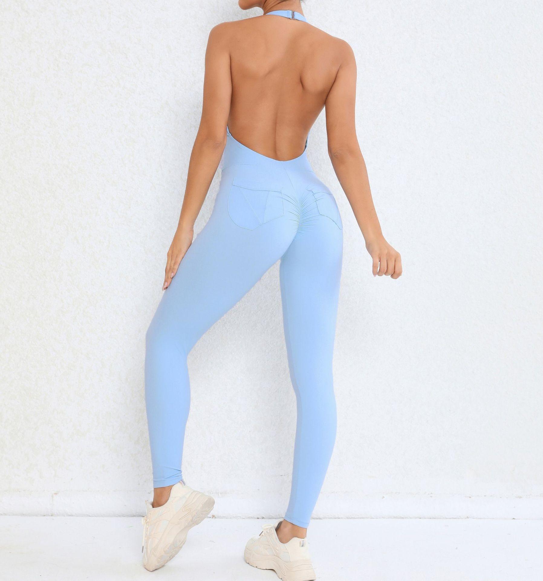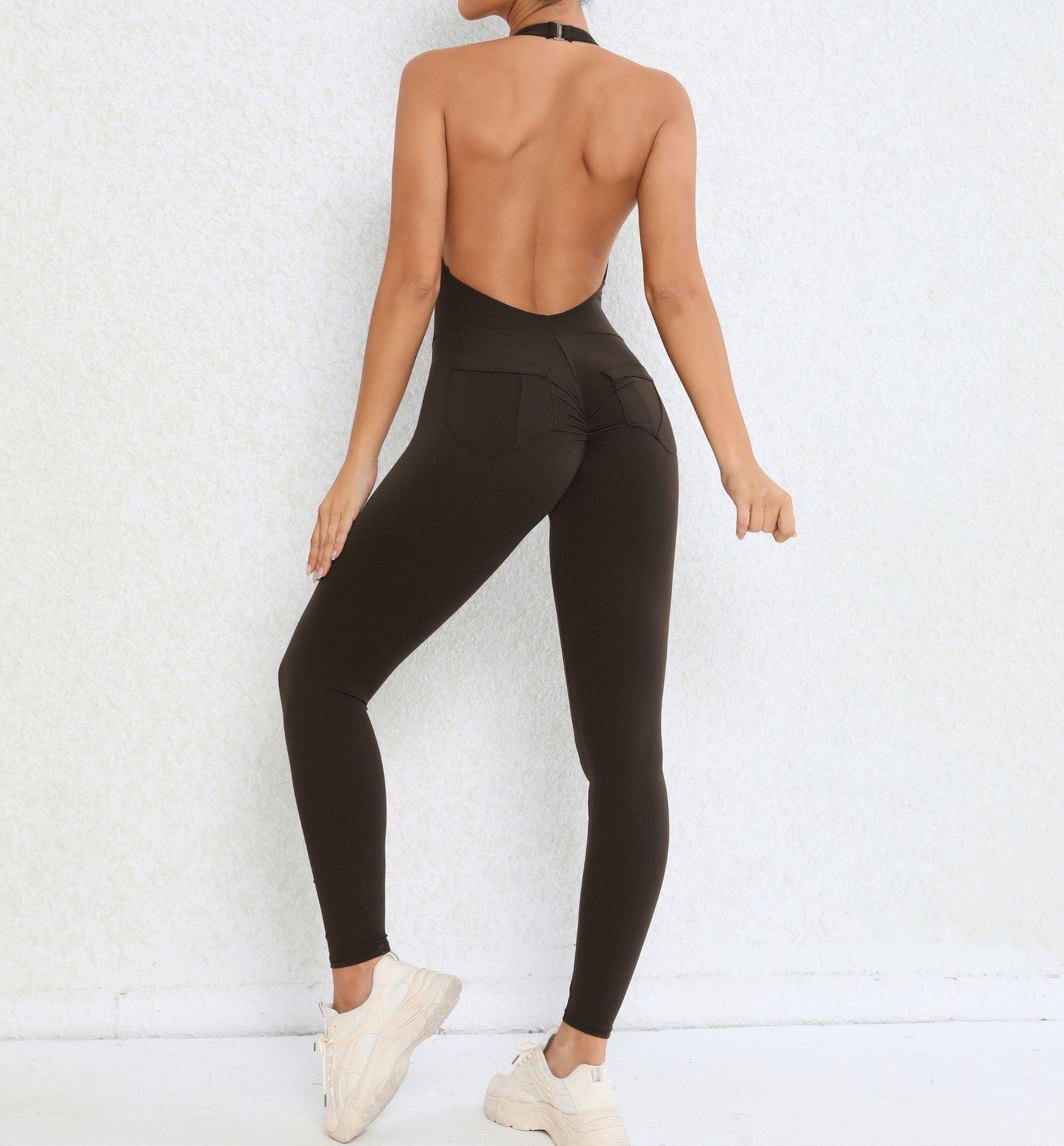 Mono de yoga con cuello halter grande, sin espalda, con bolsillo plisado, color melocotón, ajustado, deportivo y de fitness para mujer, estilo europeo y americano