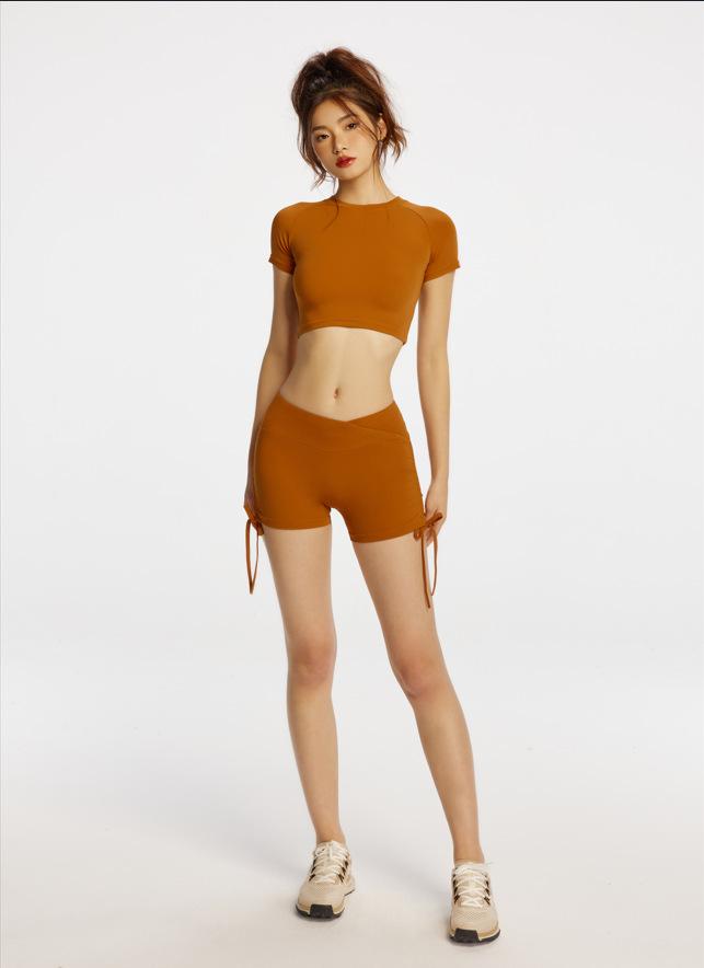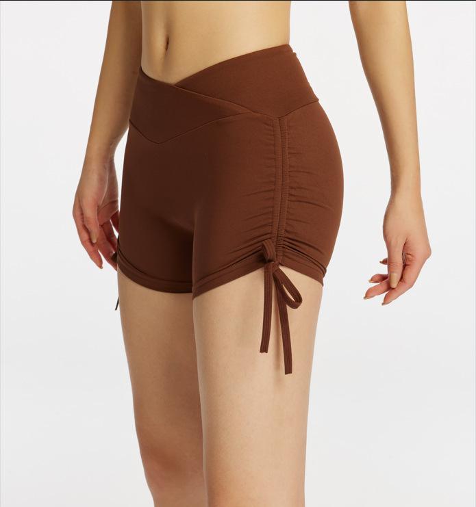 Pantalones cortos de yoga color piel, elásticos, con cordón en la cintura, cintura en V, color melocotón, tres piezas, para fitness, correr, deportes, pantalones cortos