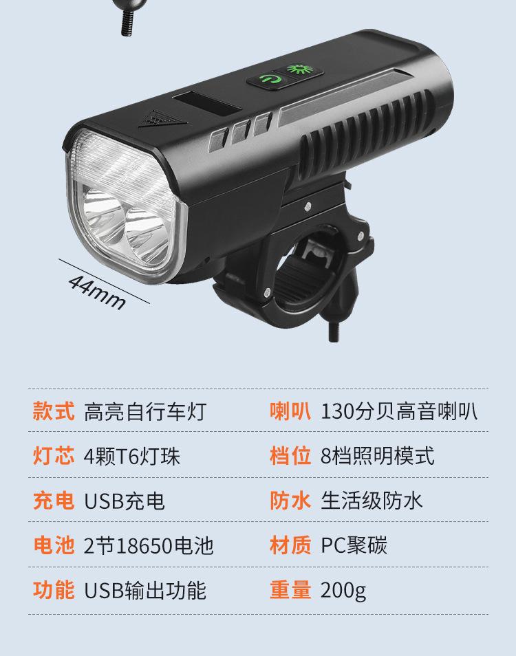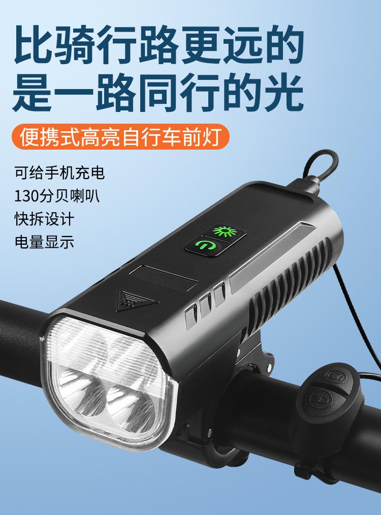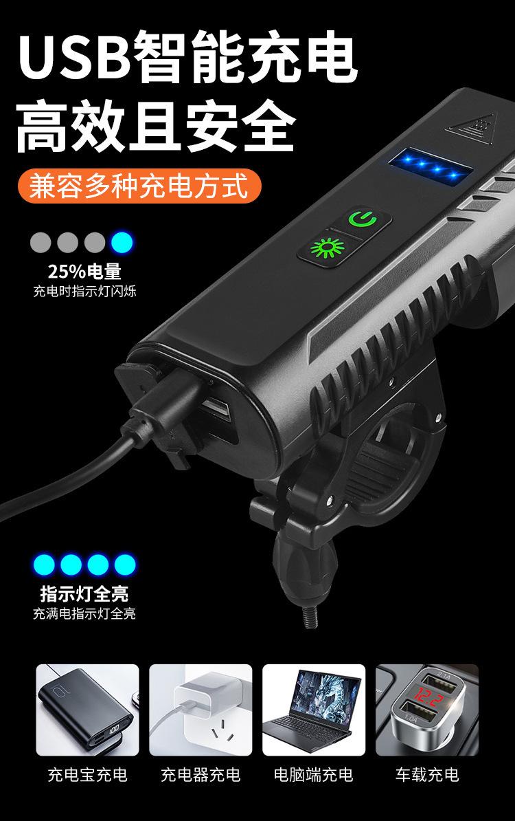 Luz de bicicleta con bocina de carga USB, faro T6, pantalla de potencia, iluminación para ciclismo nocturno en bicicleta de montaña, equipo de conducción