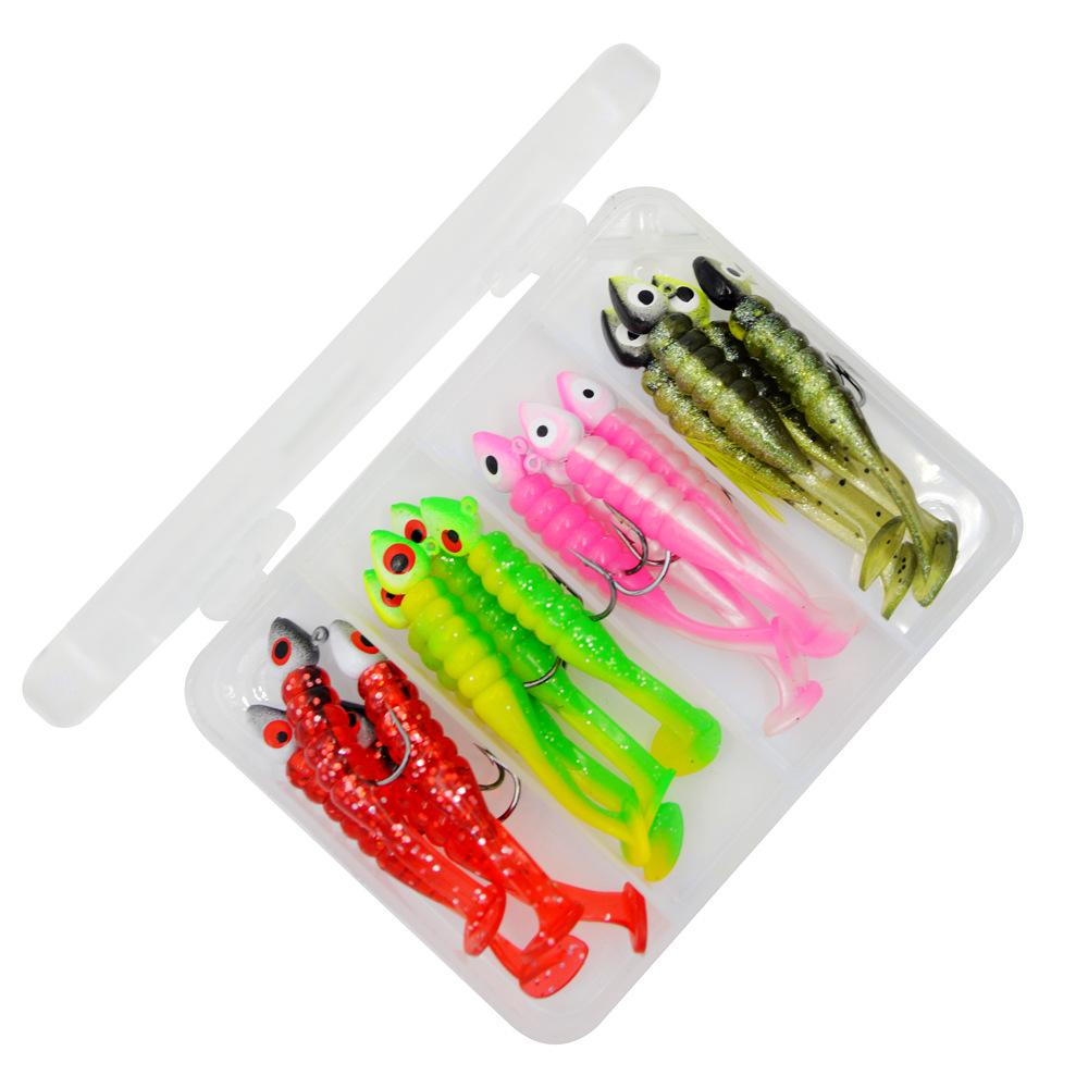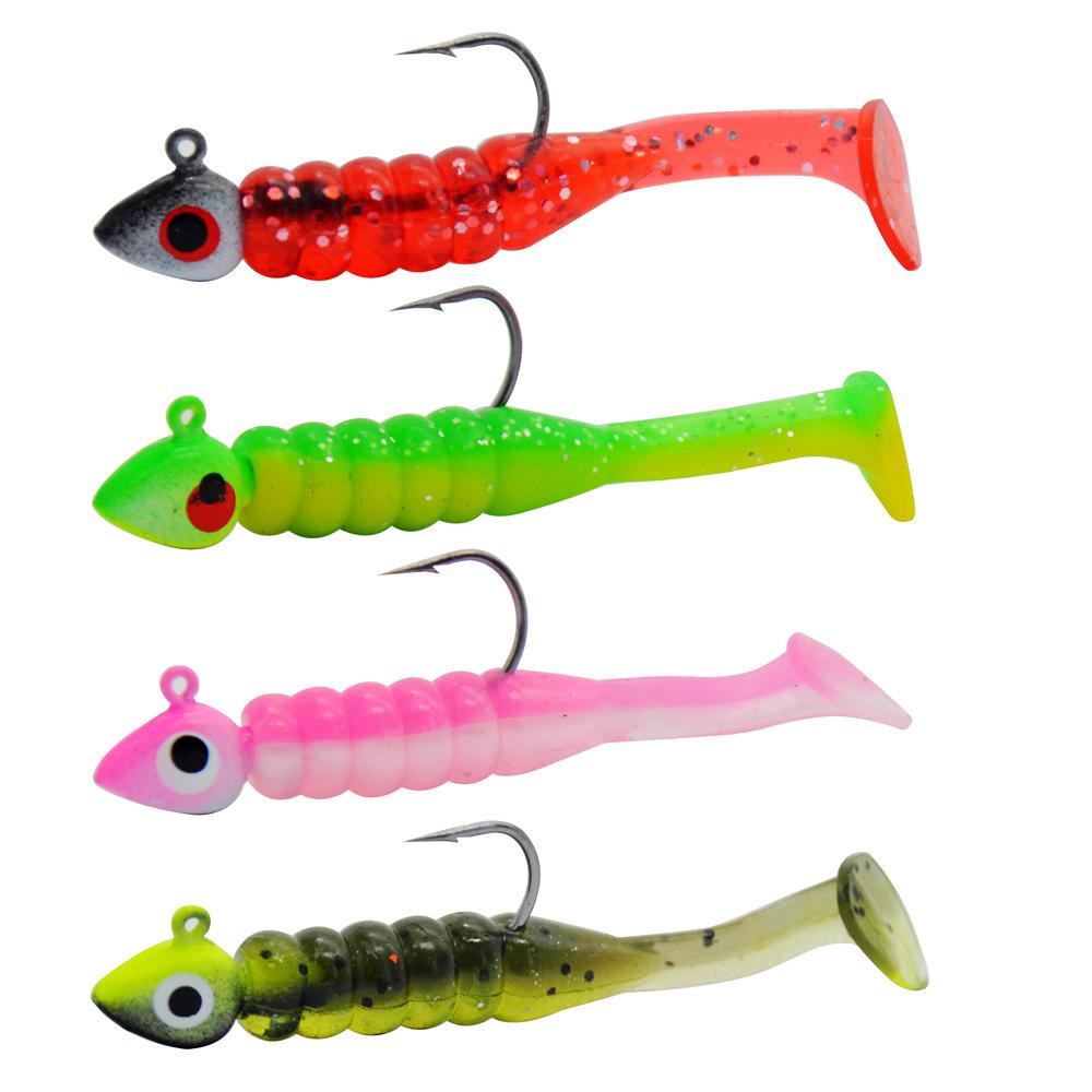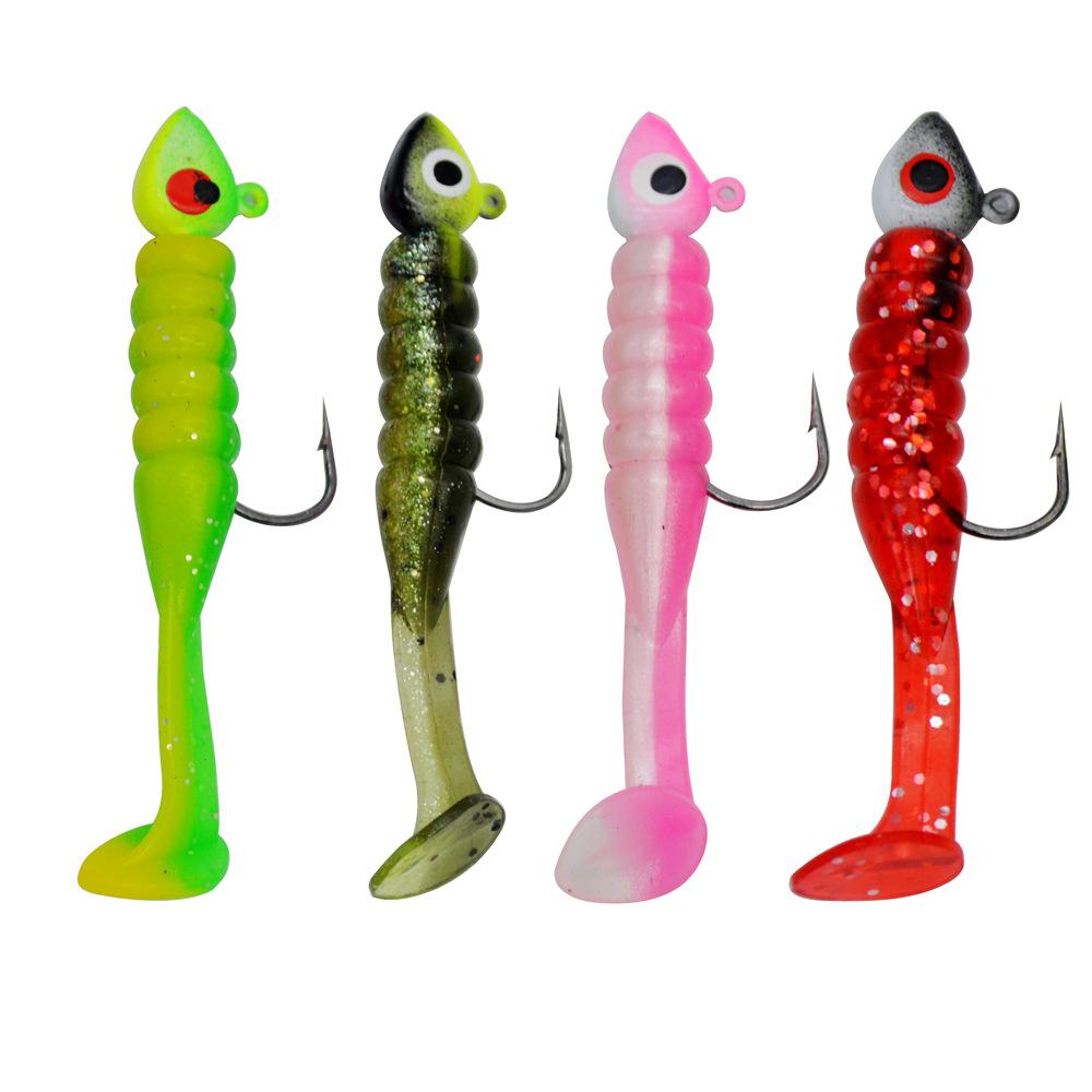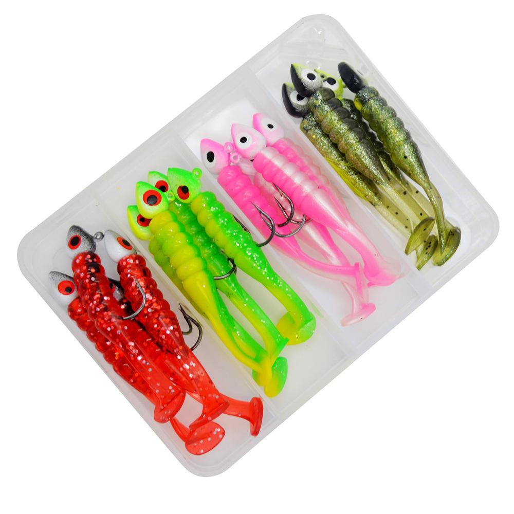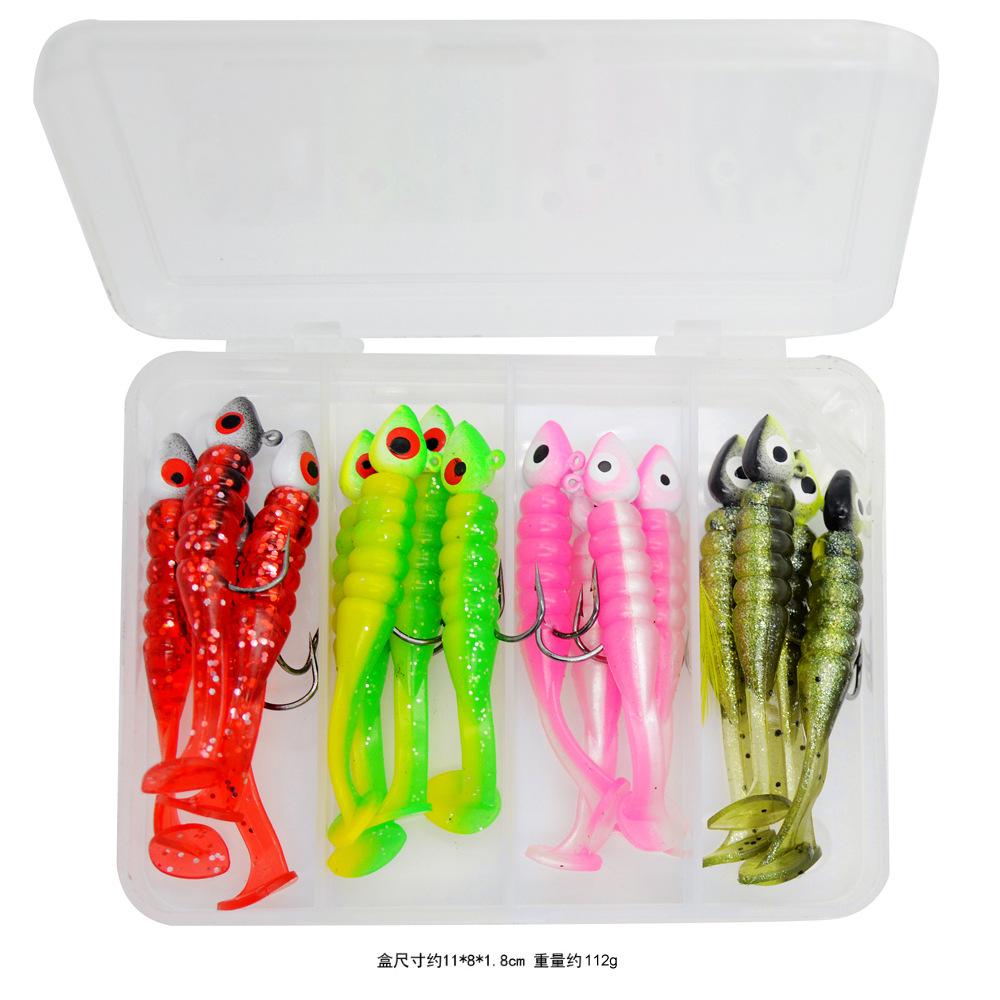 Anzuelo triangular con cabeza de pez y cebo blando, anzuelo de cabeza de plomo Luya, cola en T, 16 unidades/caja, equipo de pesca con cebo falso biónico