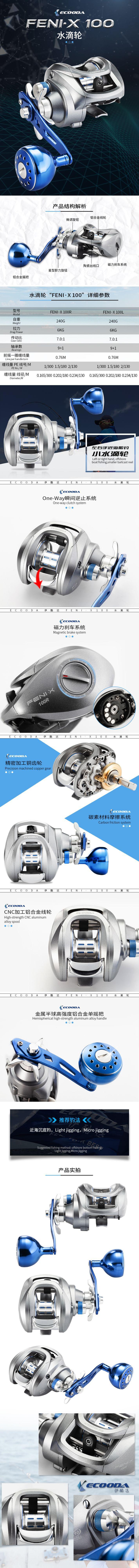 Rueda de pesca marina Ikuda FENIX100 con forma de gota de agua, de una sola manivela, con freno magnético y placa de hierro de rodadura lenta, rueda de pesca para barco Luya