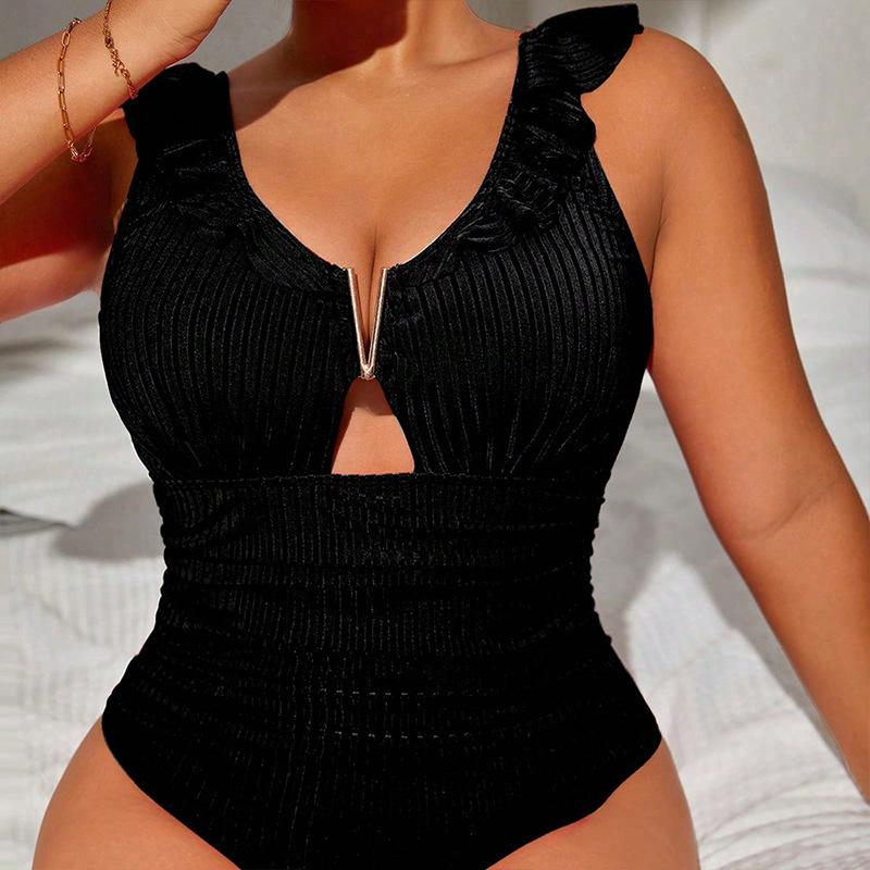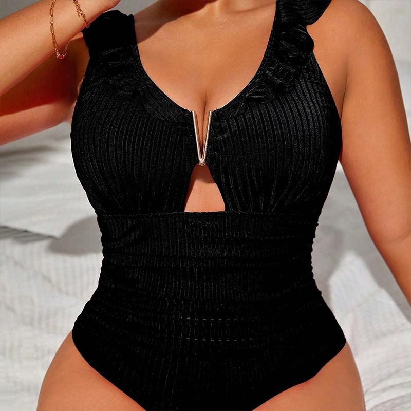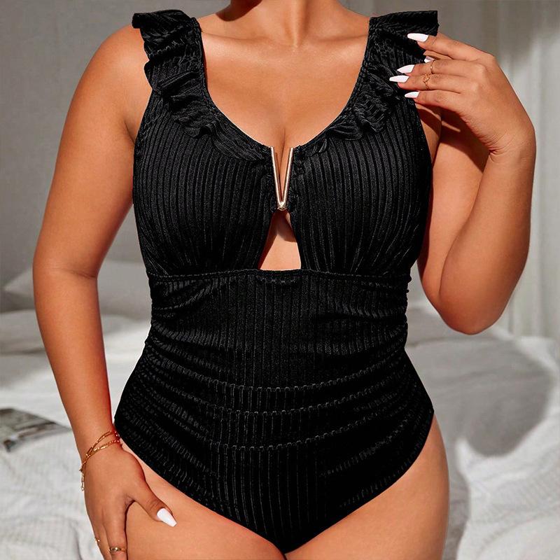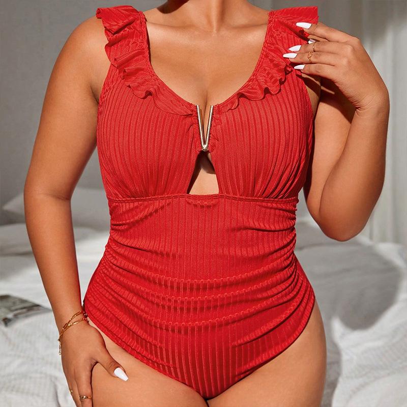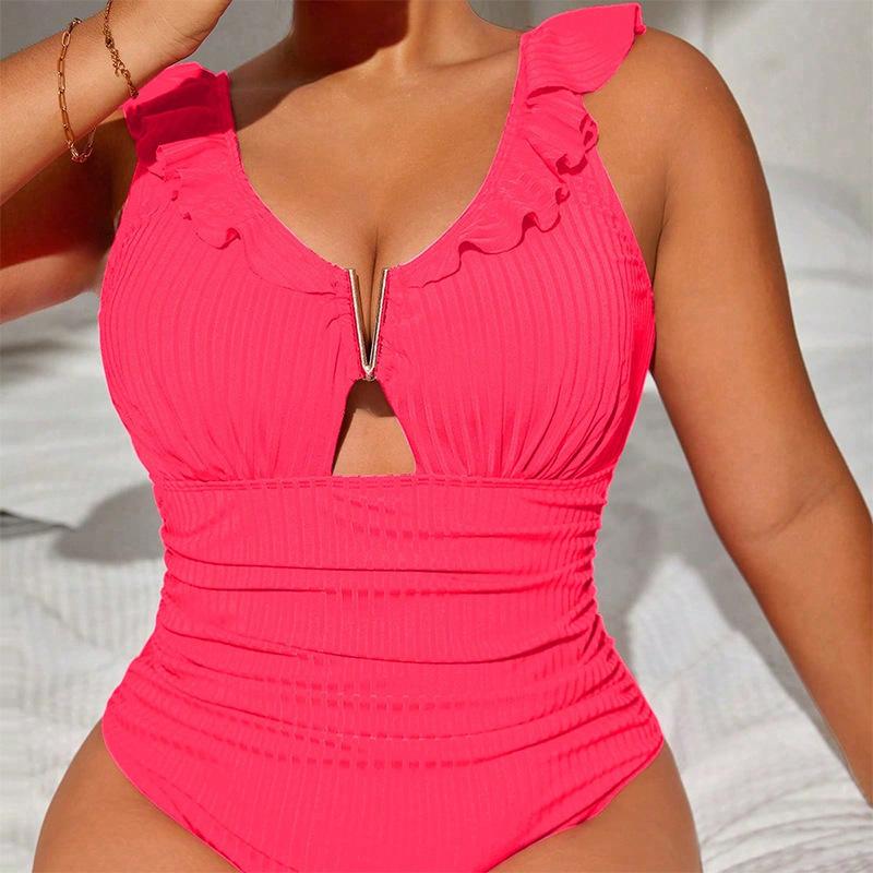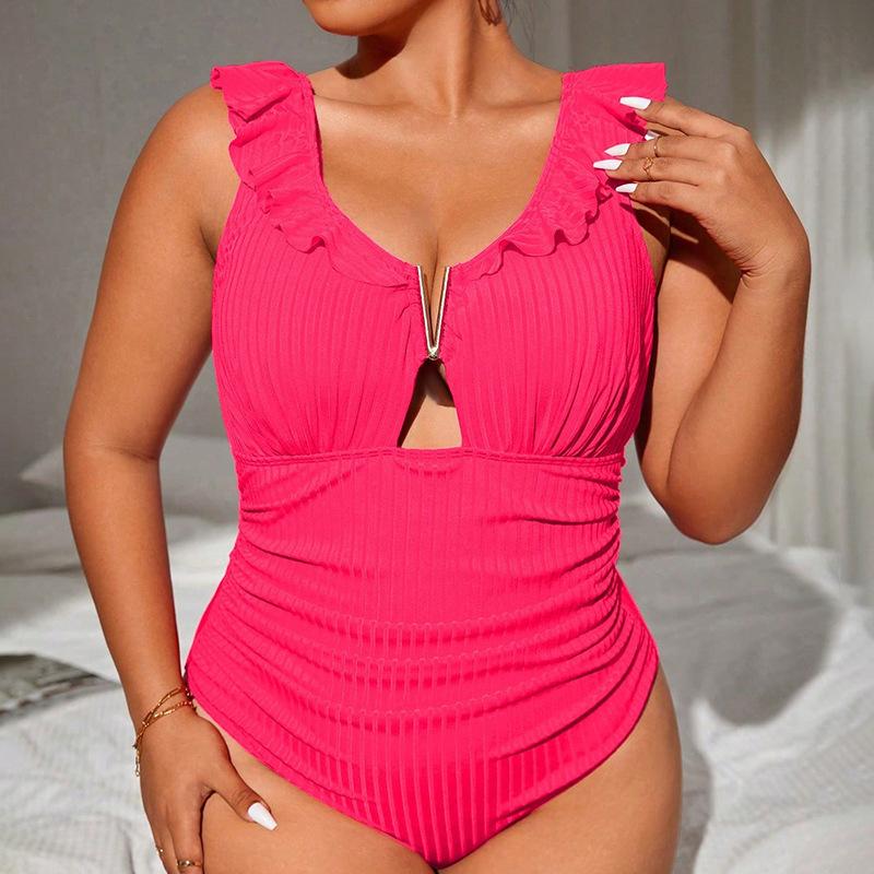 Traje de baño de una pieza para mujer, estilo europeo y americano, con volantes multicolores, adelgazante, talla grande, para playa, 2024