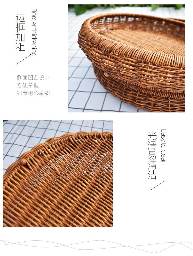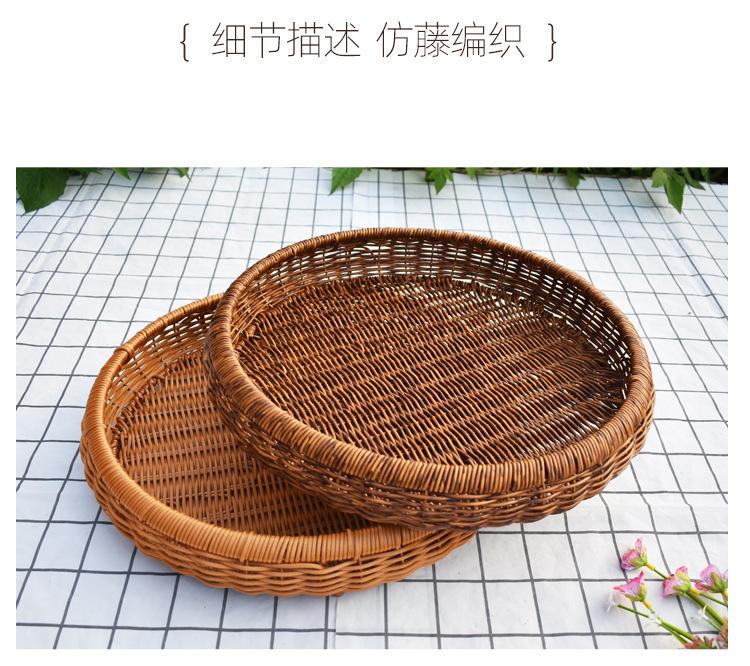 Cesta de frutas tejida de imitación de ratán, cesta de pan, cesta de exhibición de frutas y verduras de supermercado, cesta de almacenamiento de refrigerios, cesta redonda tejida a mano