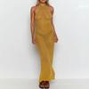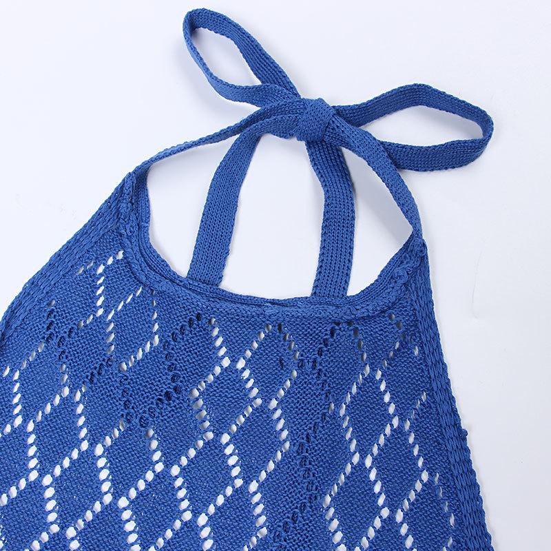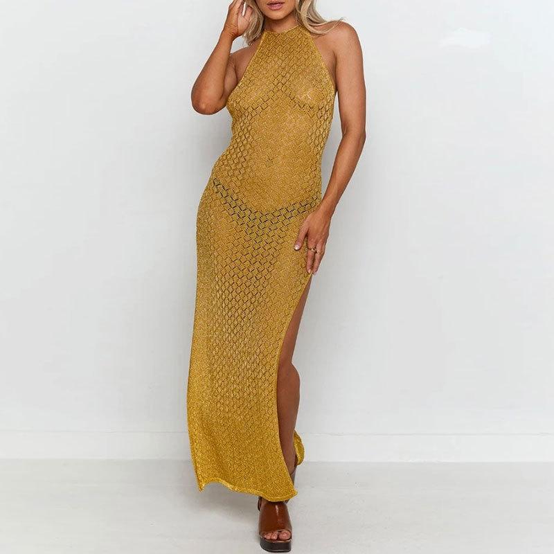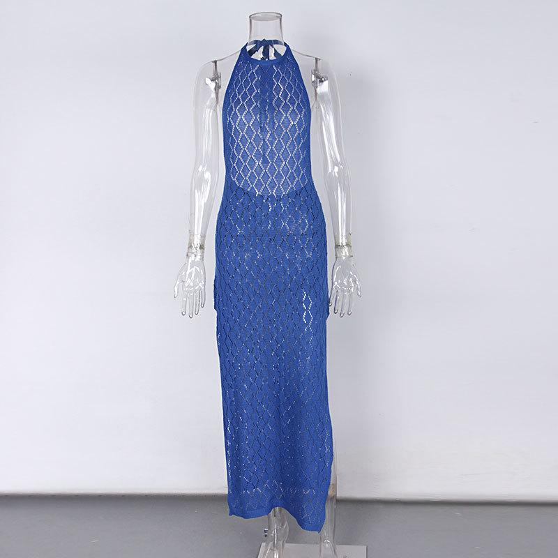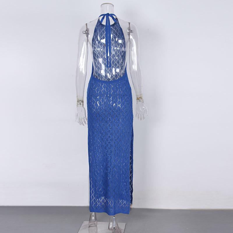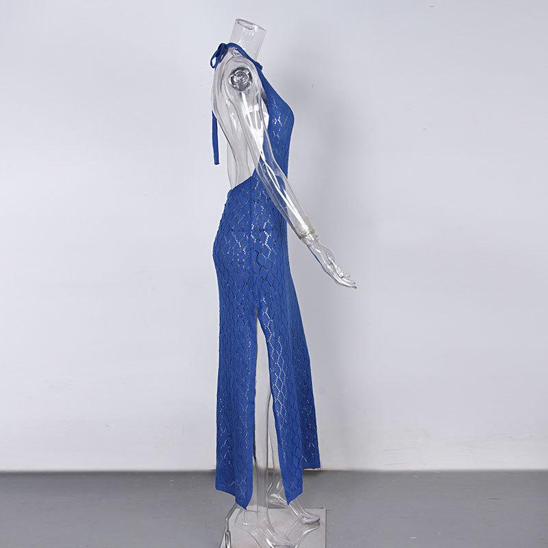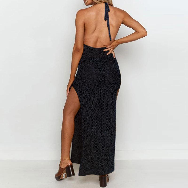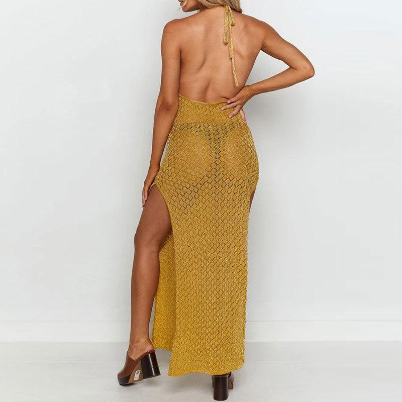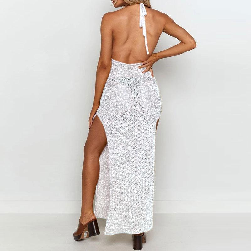 Nuevo Amazon Transfronterizo Tejido Calado Protector Solar Cubre Playa Halter Espalda Descubierta Abertura Bikini Traje de Baño Falda Larga