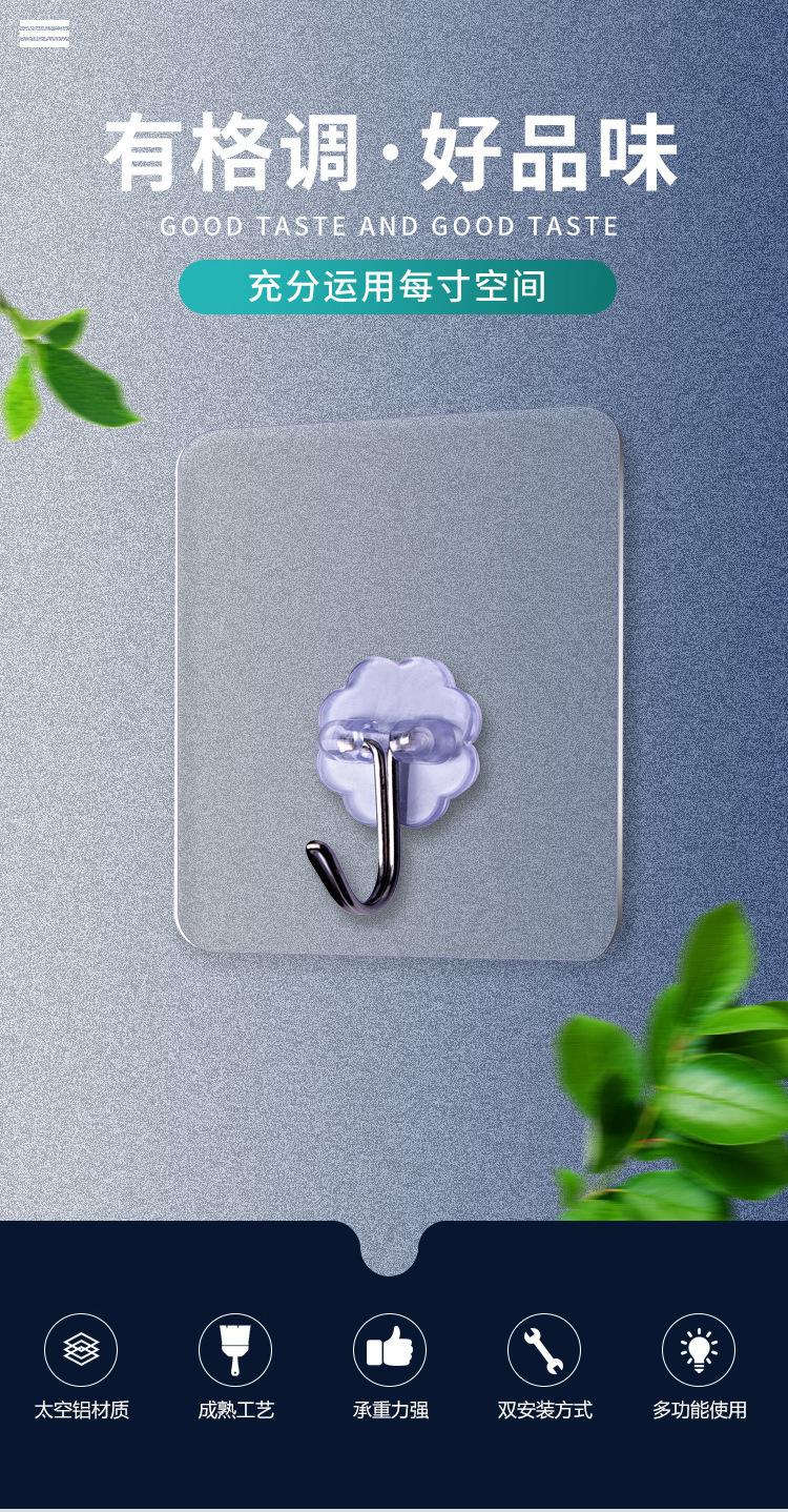 Gancho sin Rastro, Gancho Adhesivo sin Perforaciones, Hebilla para Baño Cocina, Adhesivo Fuerte, Gancho de Plástico Transparente Multifuncional, Gancho