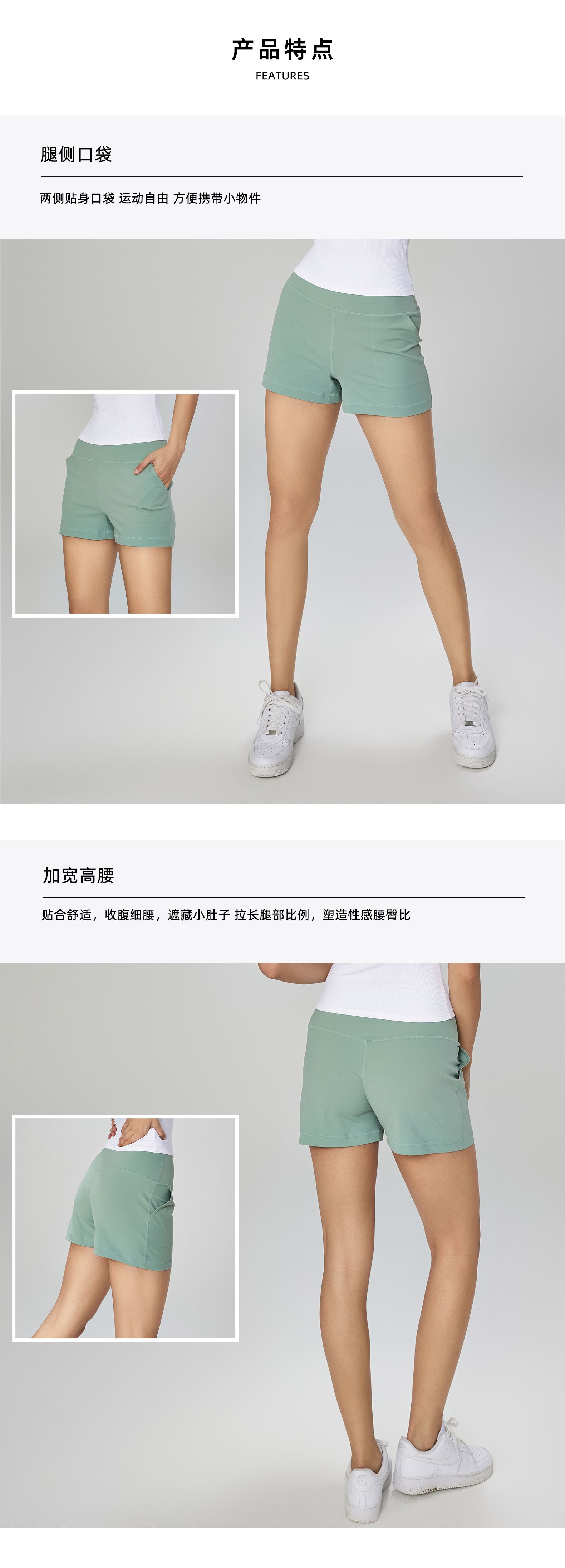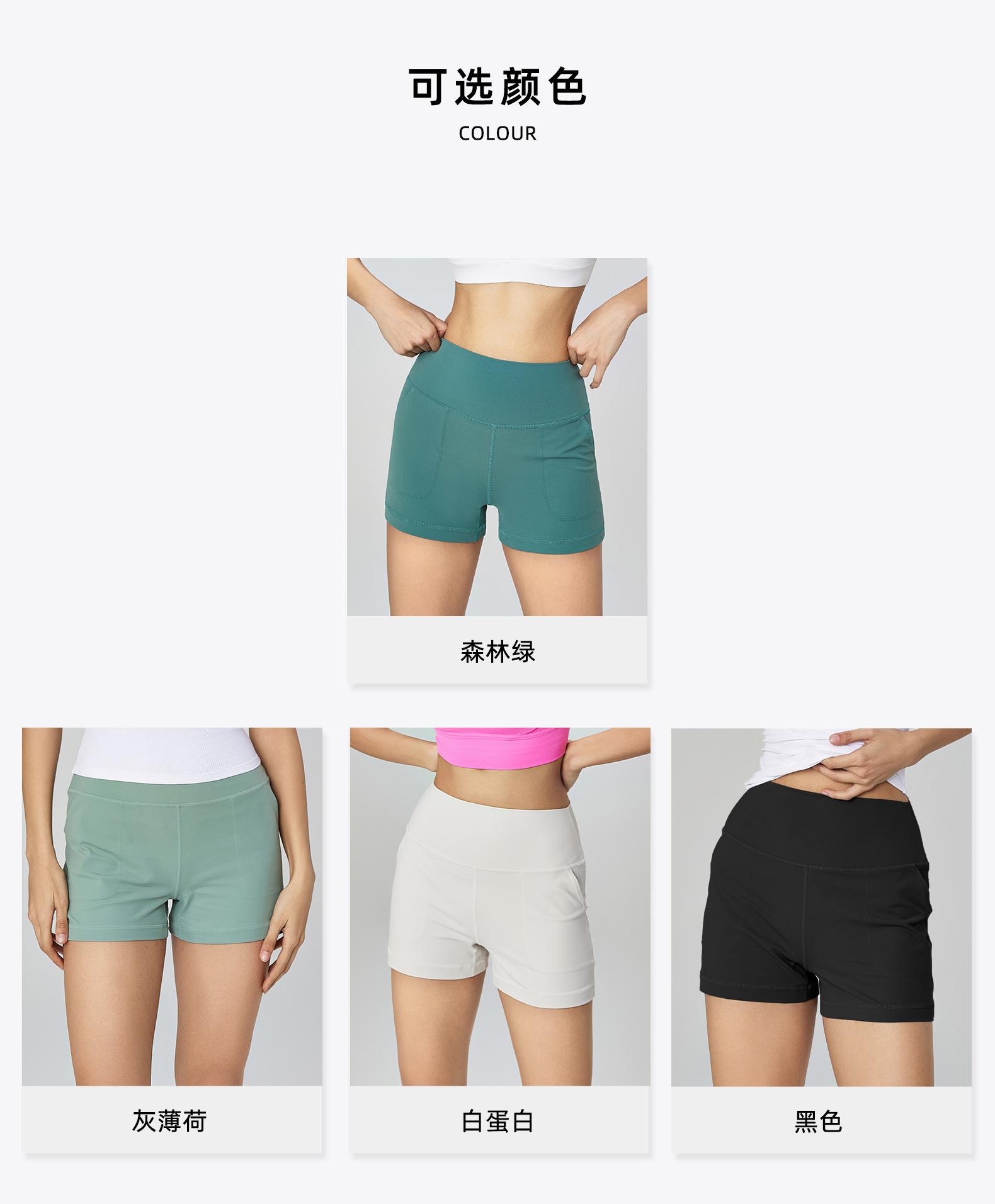 Verano Nuevo Estilo Nude Shorts de Yoga Cintura Alta Slim Pantalones Deportivos Diseño Corto con Bolsillos Ropa de Yoga para Mujeres