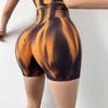 Pantalones cortos de fitness de tres puntos tie-dye europeos y americanos de verano para mujer, cintura alta, levanta glúteos, ajustados, deportivos, para correr, con efecto vientre plano, shorts de yoga