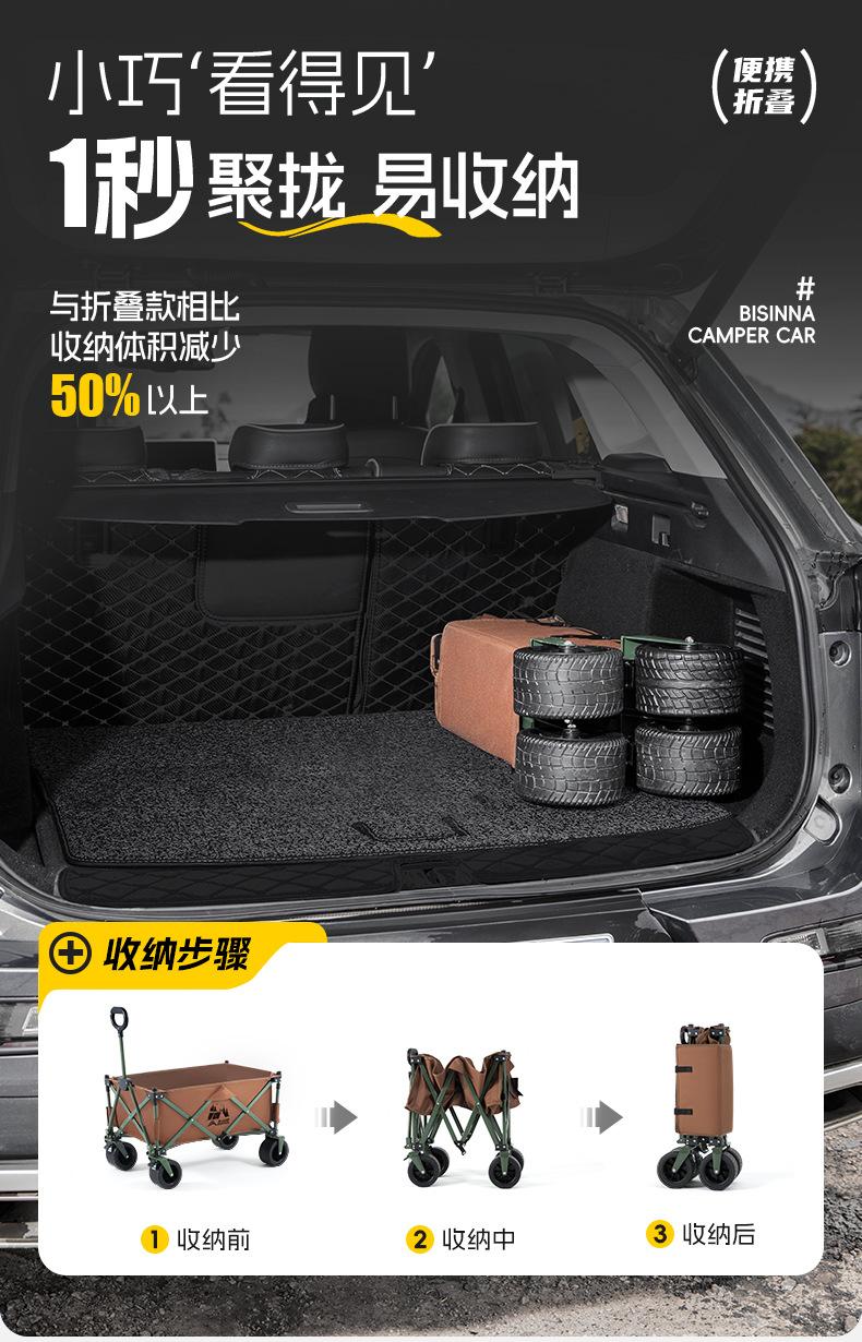 Carro de Camping para Autocaravana Puesto Exterior Carro Plegable Carro Grande de Picnic Rueda Universal Carro de Reunión