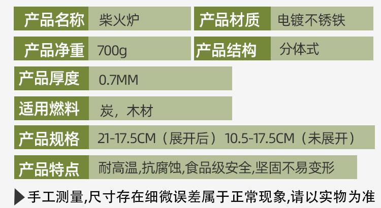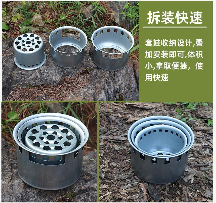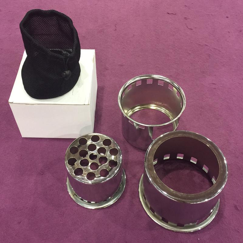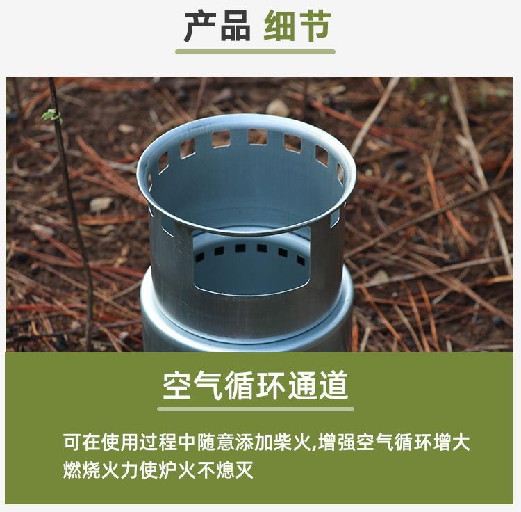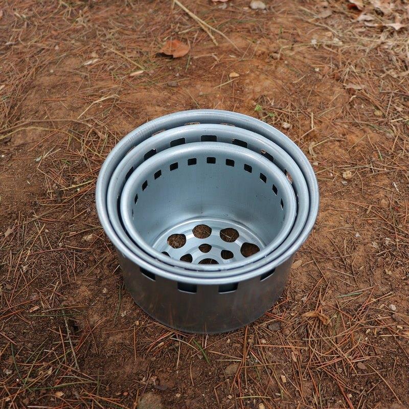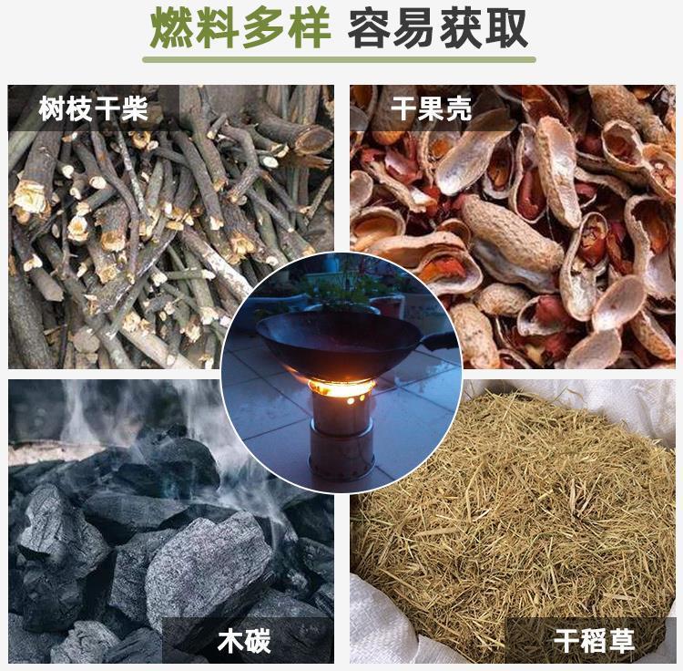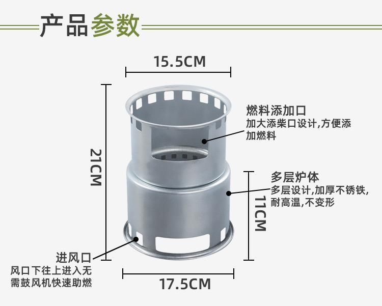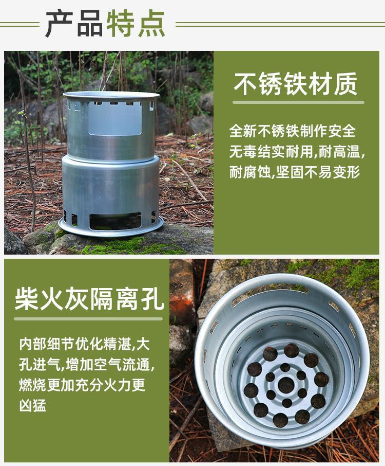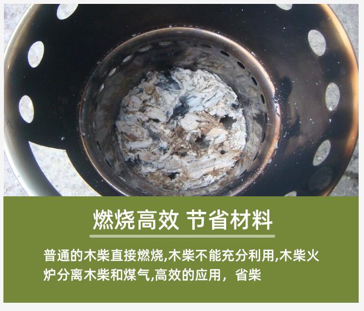 El diseño único de la capa intermedia calienta el aire que entra en la capa intermedia del cuerpo del horno y lo expulsa por los orificios de combustión en el lateral del horno. El gas de madera gasificado puede quemarse en la segunda etapa cerca de los orificios de combustión (ver las fotos reales a continuación, hay un grupo de llamas expulsadas por los orificios de combustión), lo que mejora enormemente la eficiencia de combustión de la leña y reduce la emisión de humo y gases de escape tóxicos. El peso total del diseño es inferior a 1000 gramos.