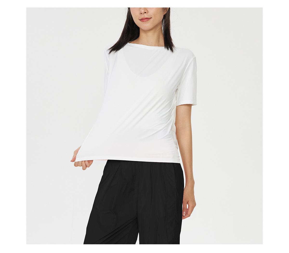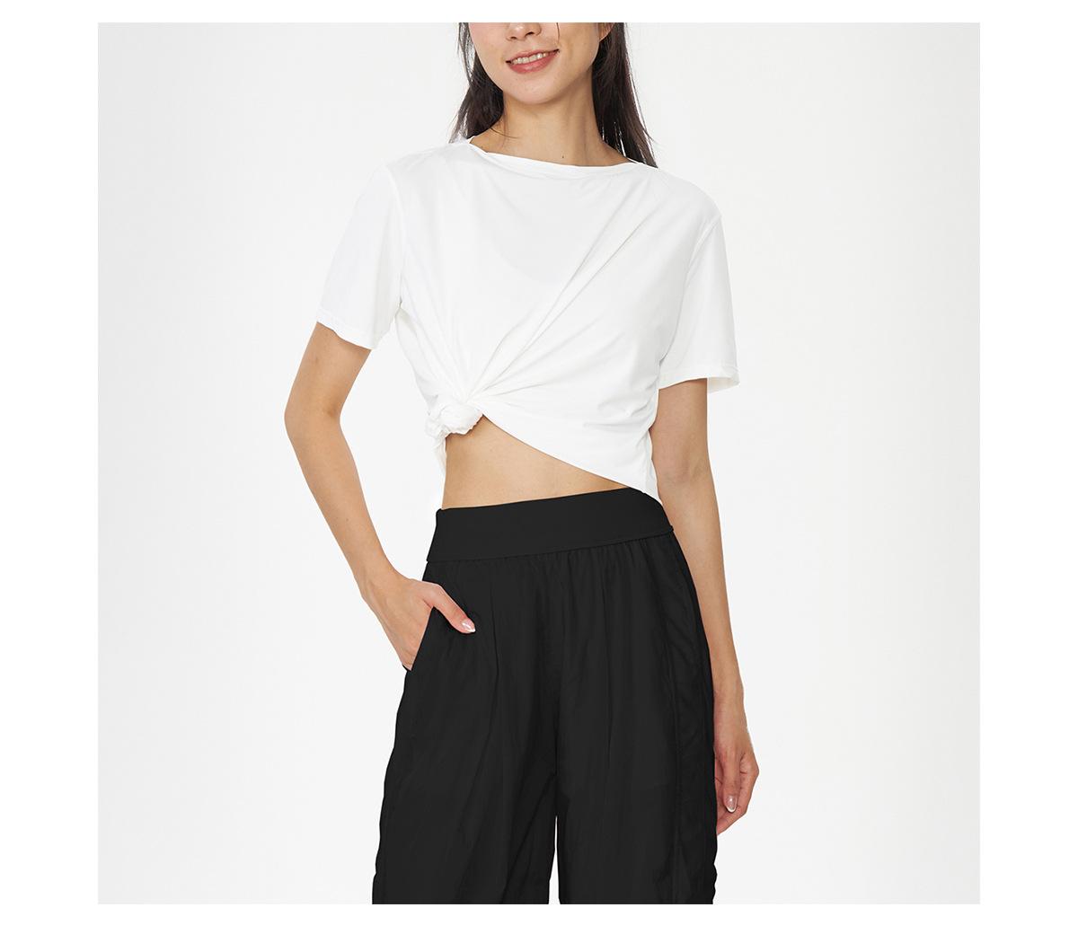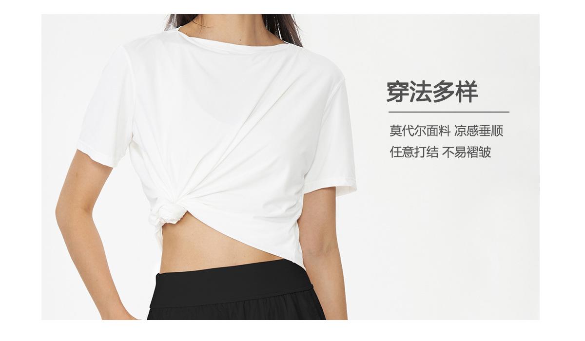 Ropa de Yoga Elástica Transpirable Camiseta Holgada para Mujer Modal Drapeado Manga Corta Casual Sencilla Cómoda Ropa Deportiva para Fitness
