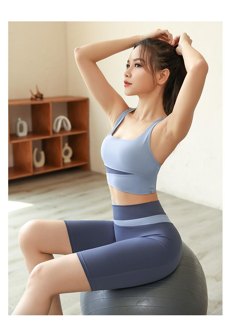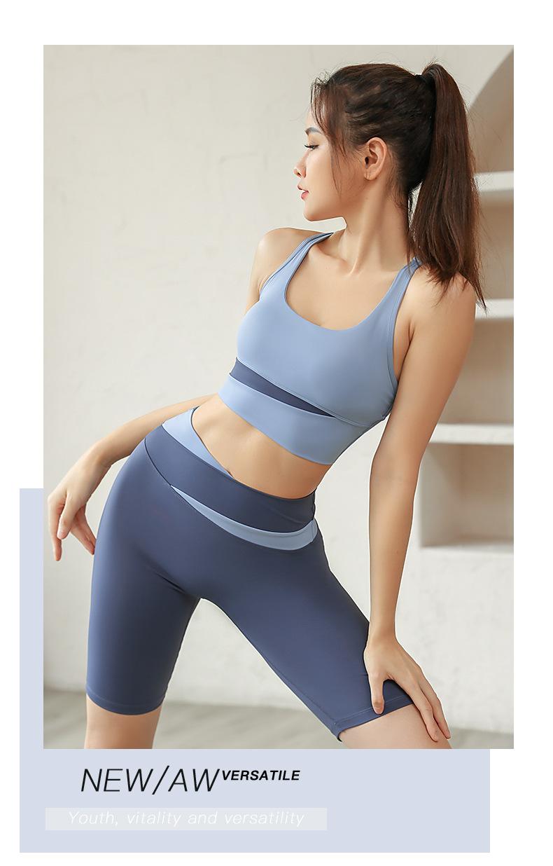 Conjunto de dos piezas de ropa de yoga para mujer, para correr, deportes, a prueba de golpes, chaleco deportivo de secado rápido, pantalones de cintura alta para levantar la cadera