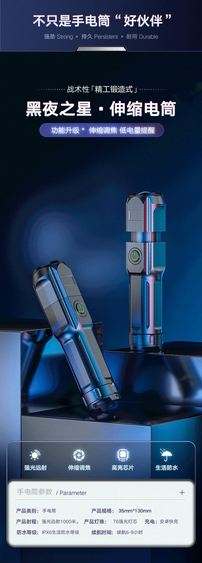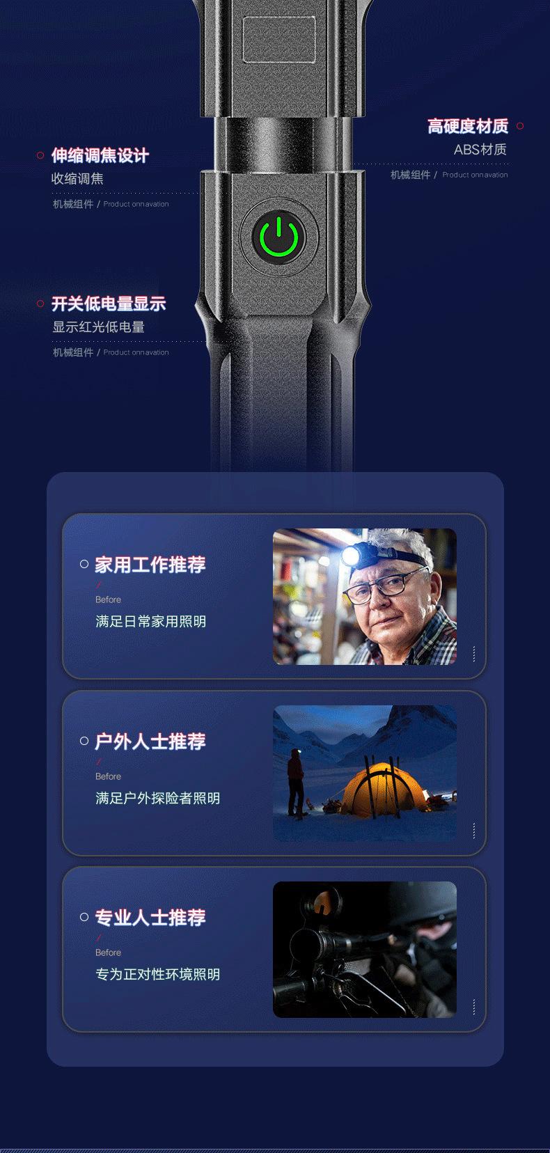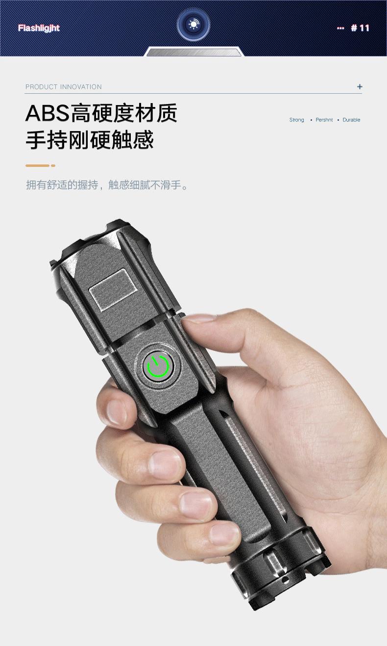 Linterna para exteriores, portátil, USB, de mano, retráctil, de alta resistencia, para acampar al aire libre.