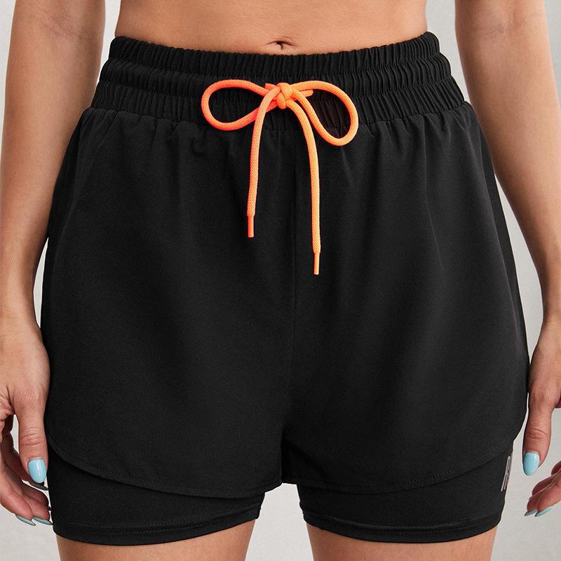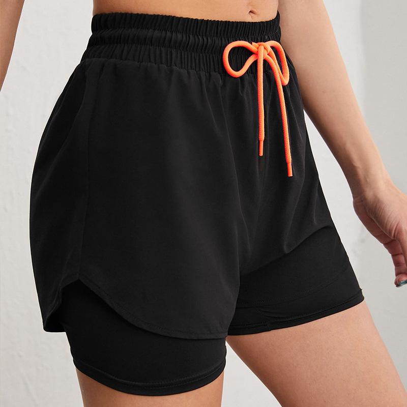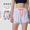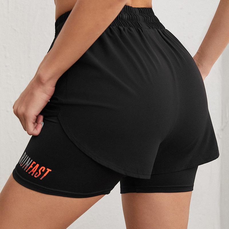 Pantalones cortos deportivos de verano para mujer, pantalones cortos para correr de noche, pantalones de yoga antiluz, casuales, de secado rápido, transpirables, pantalones de fitness falsos de dos piezas