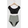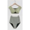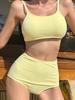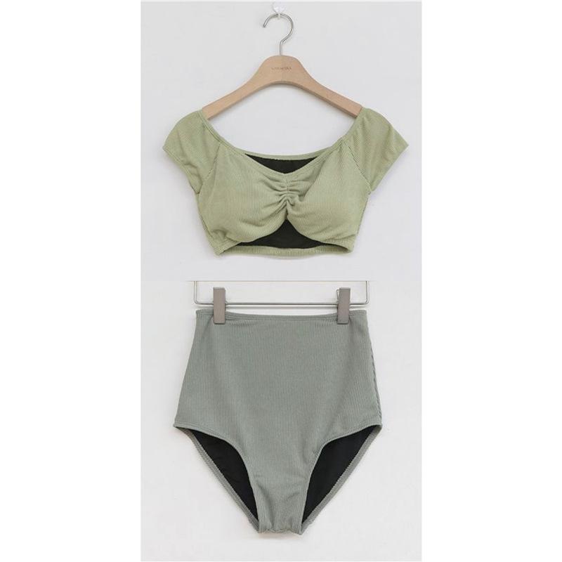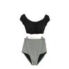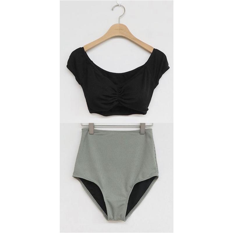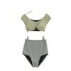 Traje de baño conservador de manga corta estilo ins de fábrica de origen, cintura alta, adelgazante de vientre, con abertura, de dos piezas para mujer, suministro transfronterizo