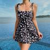 [Multicolor] Traje de baño de una pieza con falda fresca y conservadora 2023, nuevo traje de baño de primavera termal para mujer, traje de baño adelgazante que cubre el vientre