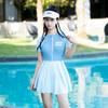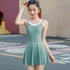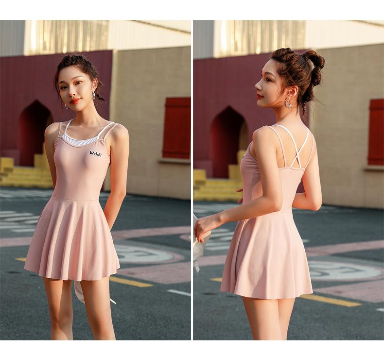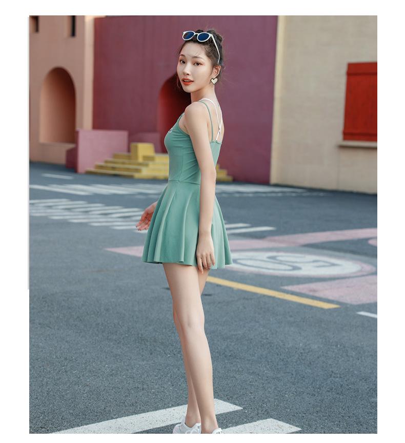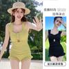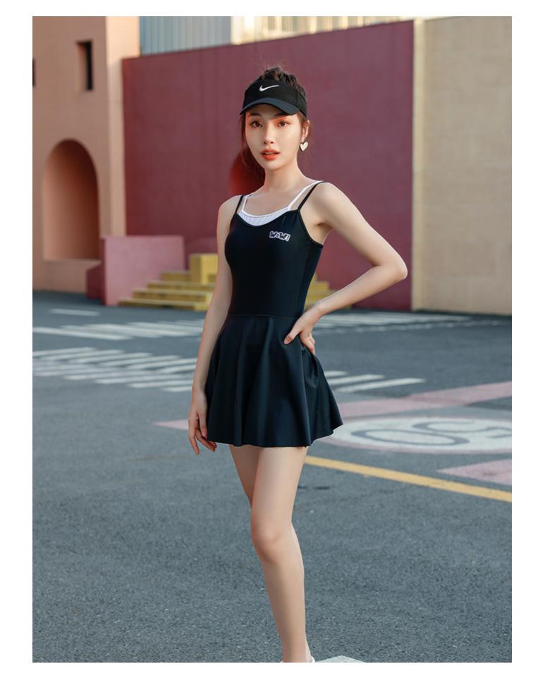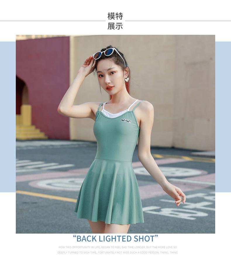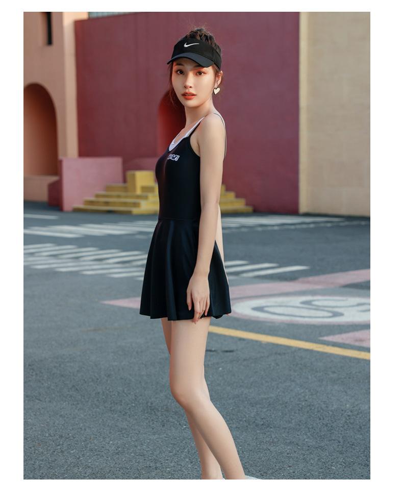 Traje de baño deportivo para mujer, niña, juvenil, de una pieza, de esquina plana, conservador, cubre el vientre, adelgazante, para estudiante, aguas termales, traje de baño de falda para mujer