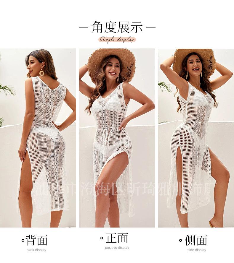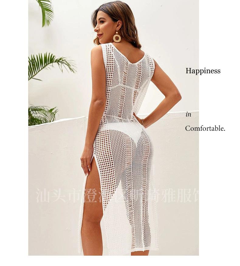 Blusa Hueca con Abertura Estilo Nuevo Transfronterizo Falda de Playa Vacaciones Bikini Blusa con Blusa Transparente y Falda Venta al por Mayor