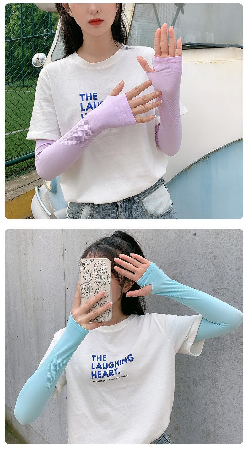 Mangas de hielo coreanas, mangas de protección solar de seda helada, mangas gruesas de color sólido sin costuras para exteriores, mangas deportivas para conducción para hombres y mujeres, venta al por mayor