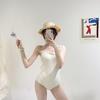 Fábrica Fuente Nuevo Estilo Sling Color Sólido Fruncido Delgado Sexy Traje de Baño Entero para Vacaciones Aguas Termales para Mujeres