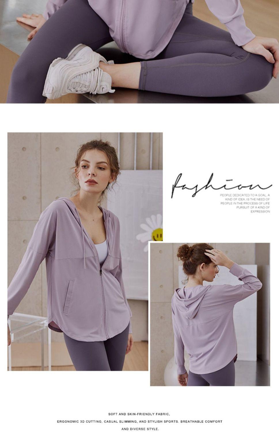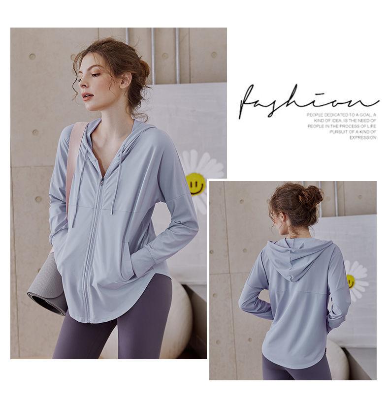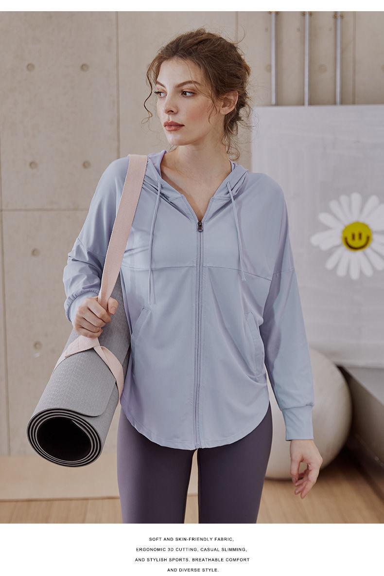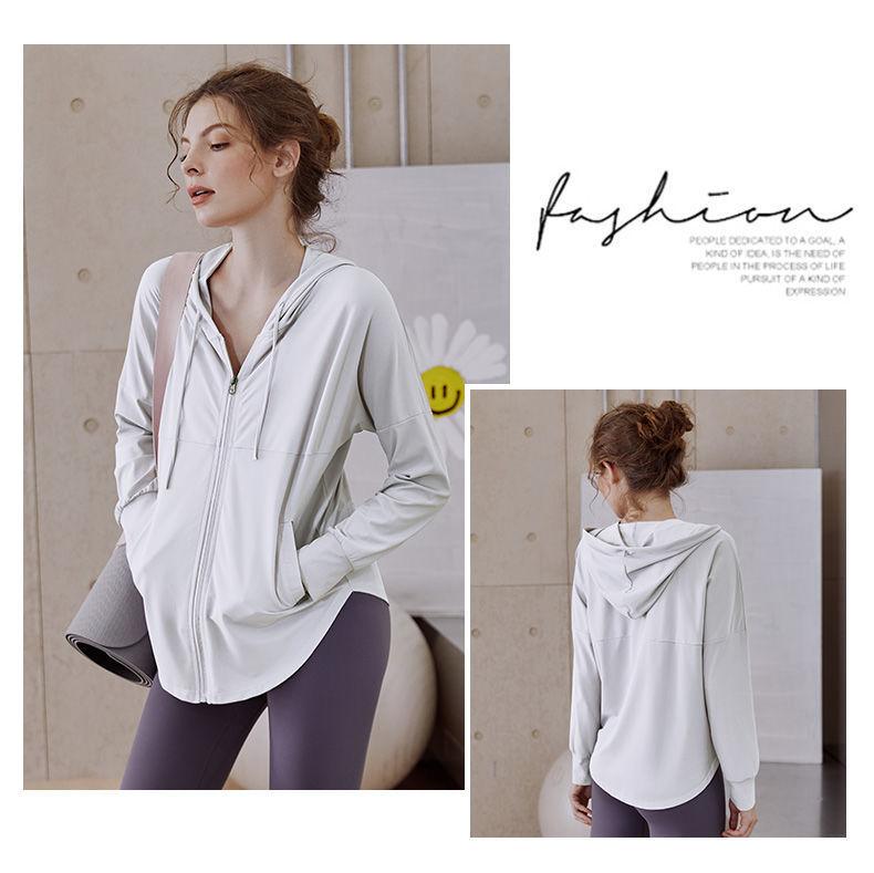 Nueva ropa de yoga para mujer, traje deportivo de fitness, chaqueta de manga larga con capucha para primavera y otoño, traje para correr de secado rápido