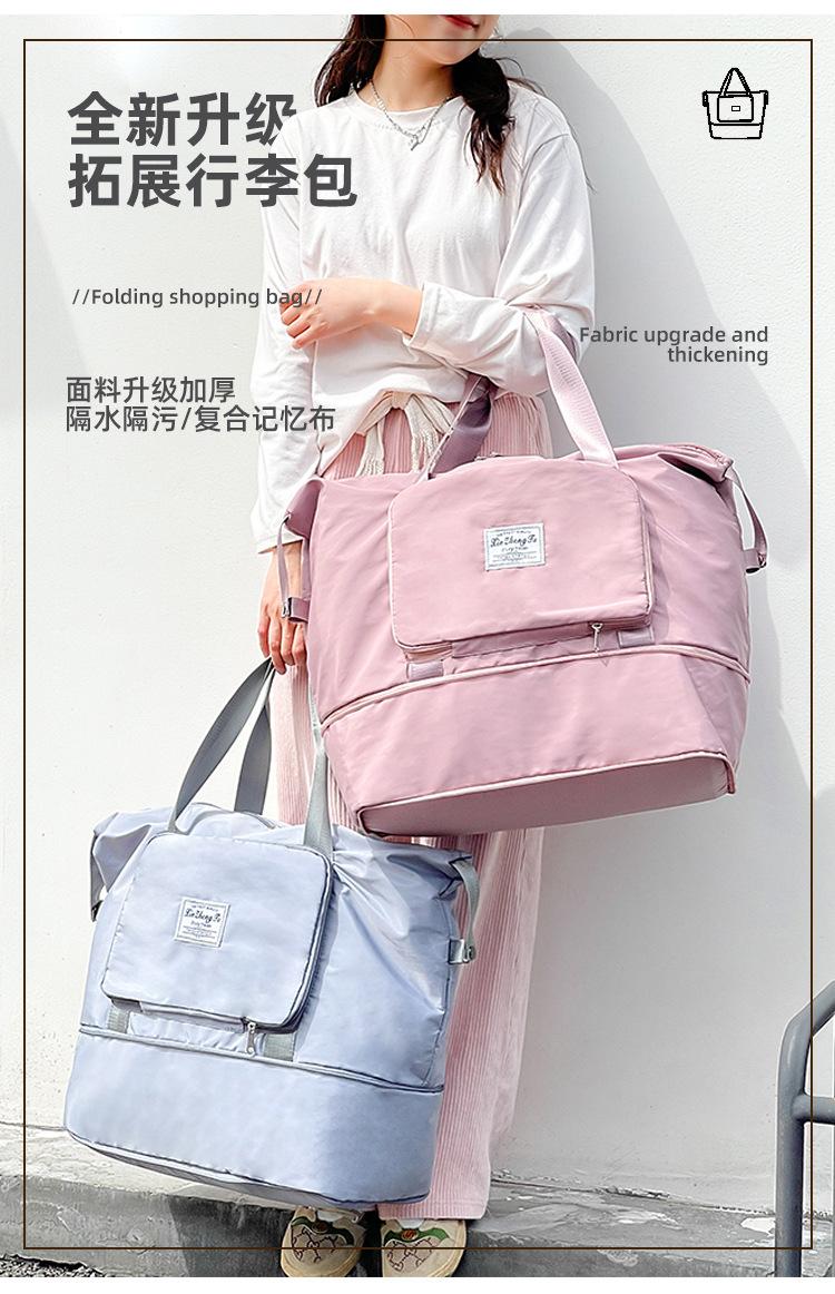 Nueva bolsa de equipaje multifuncional extendida, plegable para viaje, de gran capacidad, bolsa pequeña, ligera, impermeable, bolsa de separación húmeda y seca.