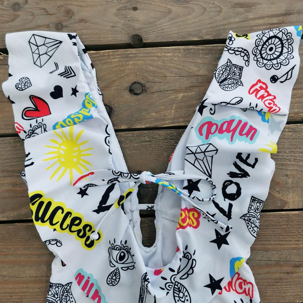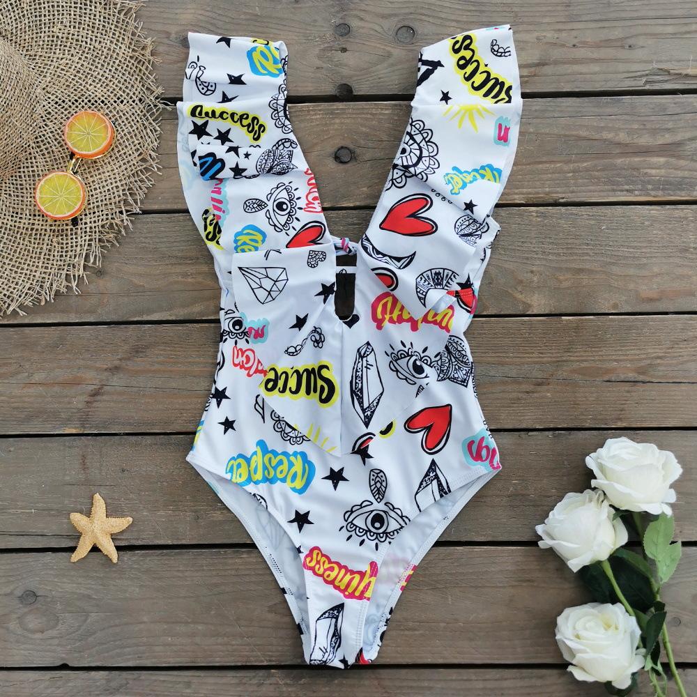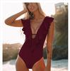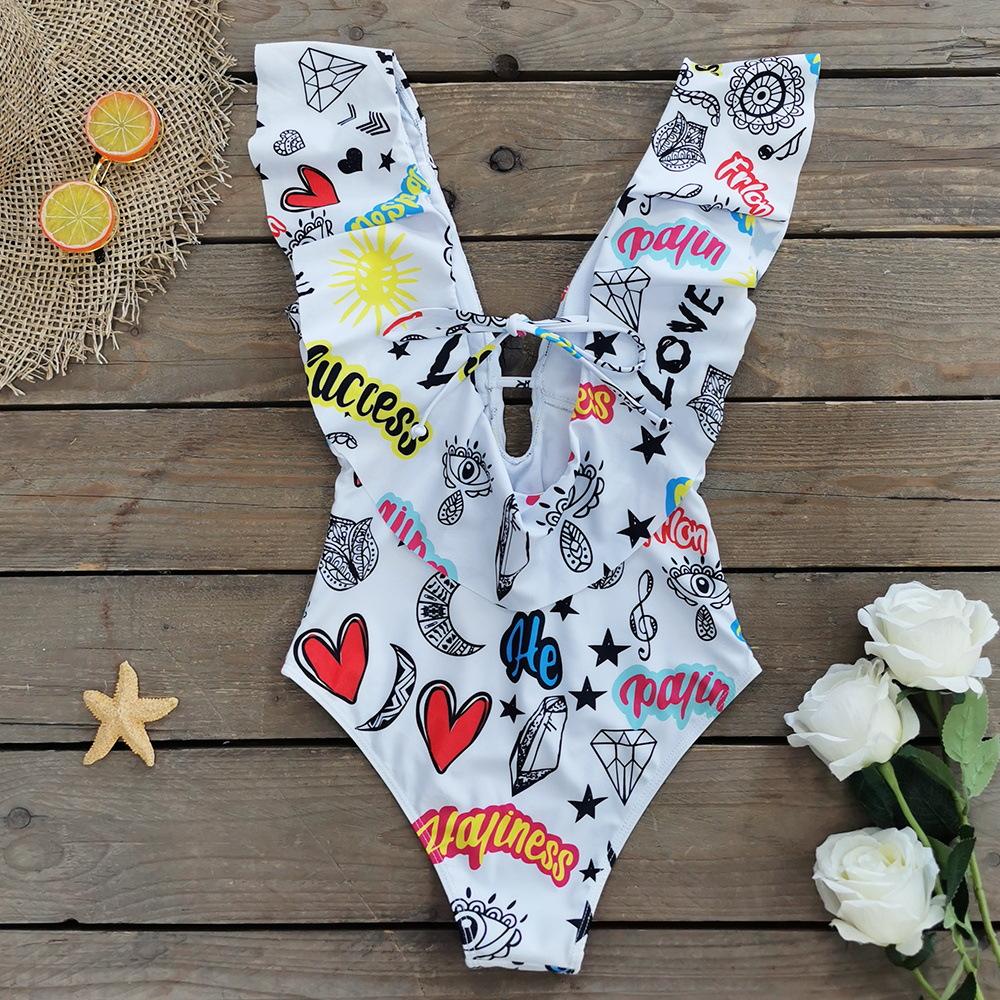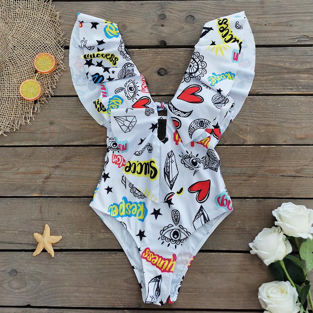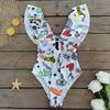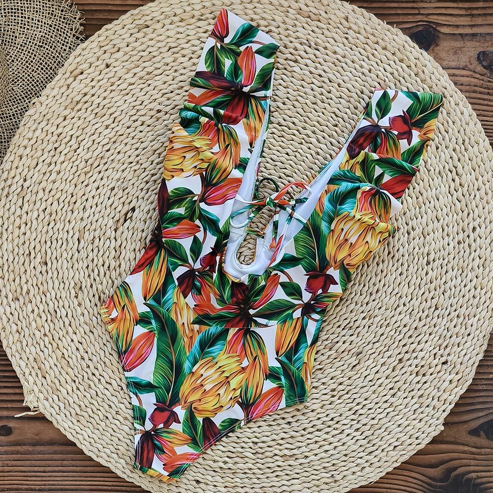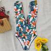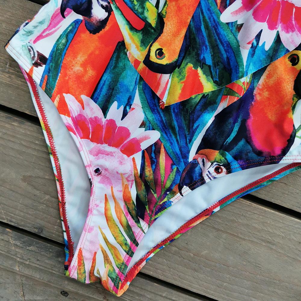 Traje de baño de cuerpo entero con estampado floral europeo y americano con volantes para mujer 2025 Nuevo Comercio Exterior Transfronterizo Sin Espalda Amazon