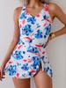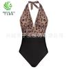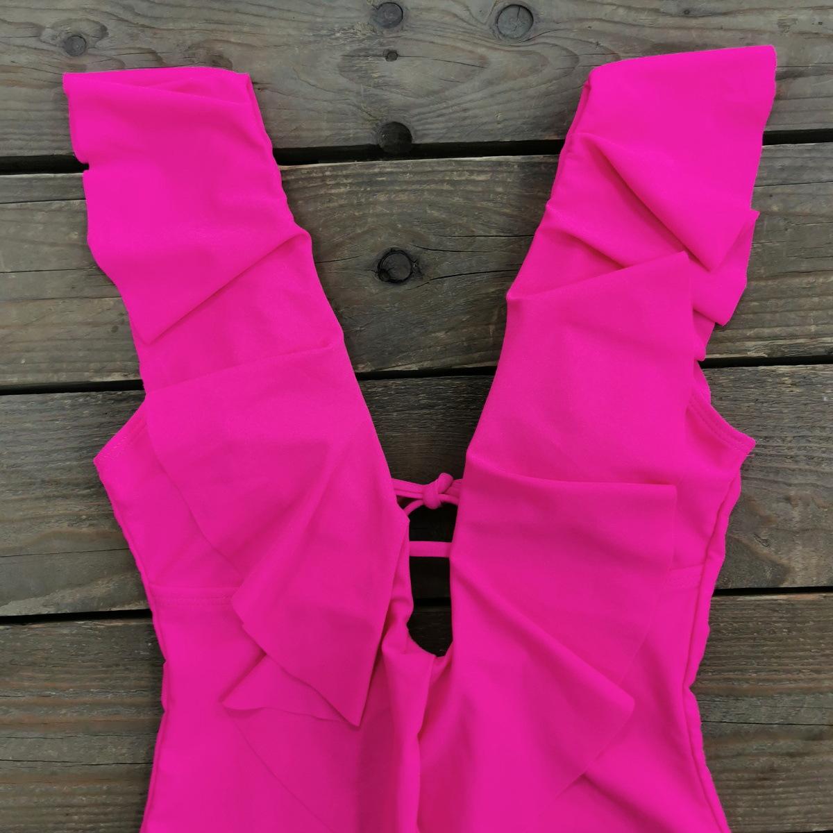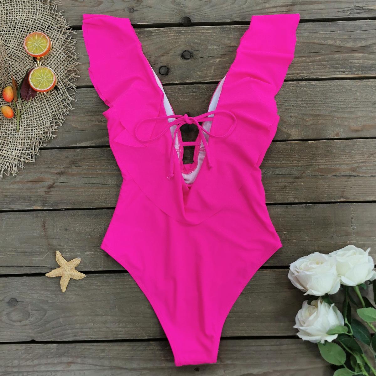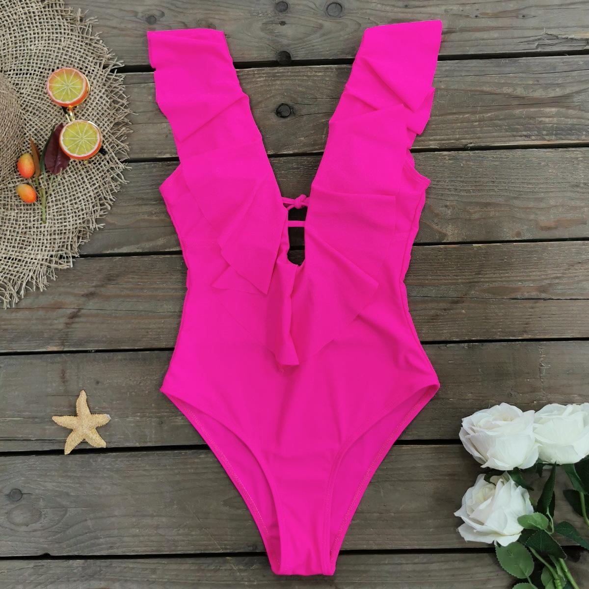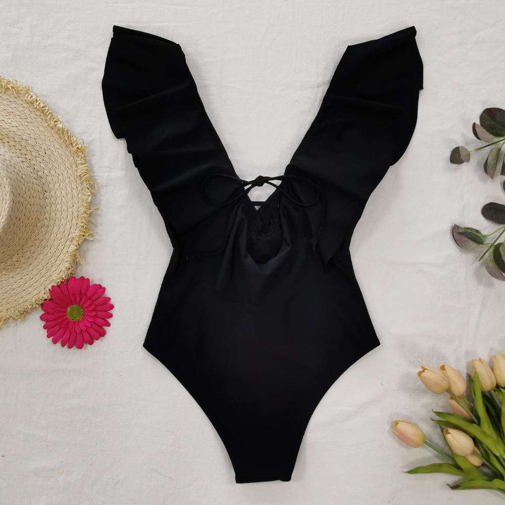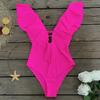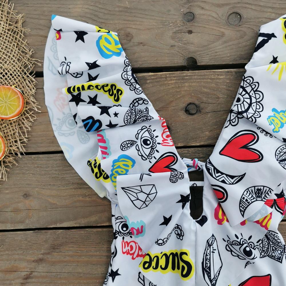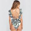 Traje de baño de cuerpo entero con estampado floral europeo y americano con volantes para mujer 2025 Nuevo Comercio Exterior Transfronterizo Sin Espalda Amazon