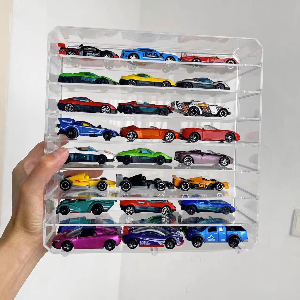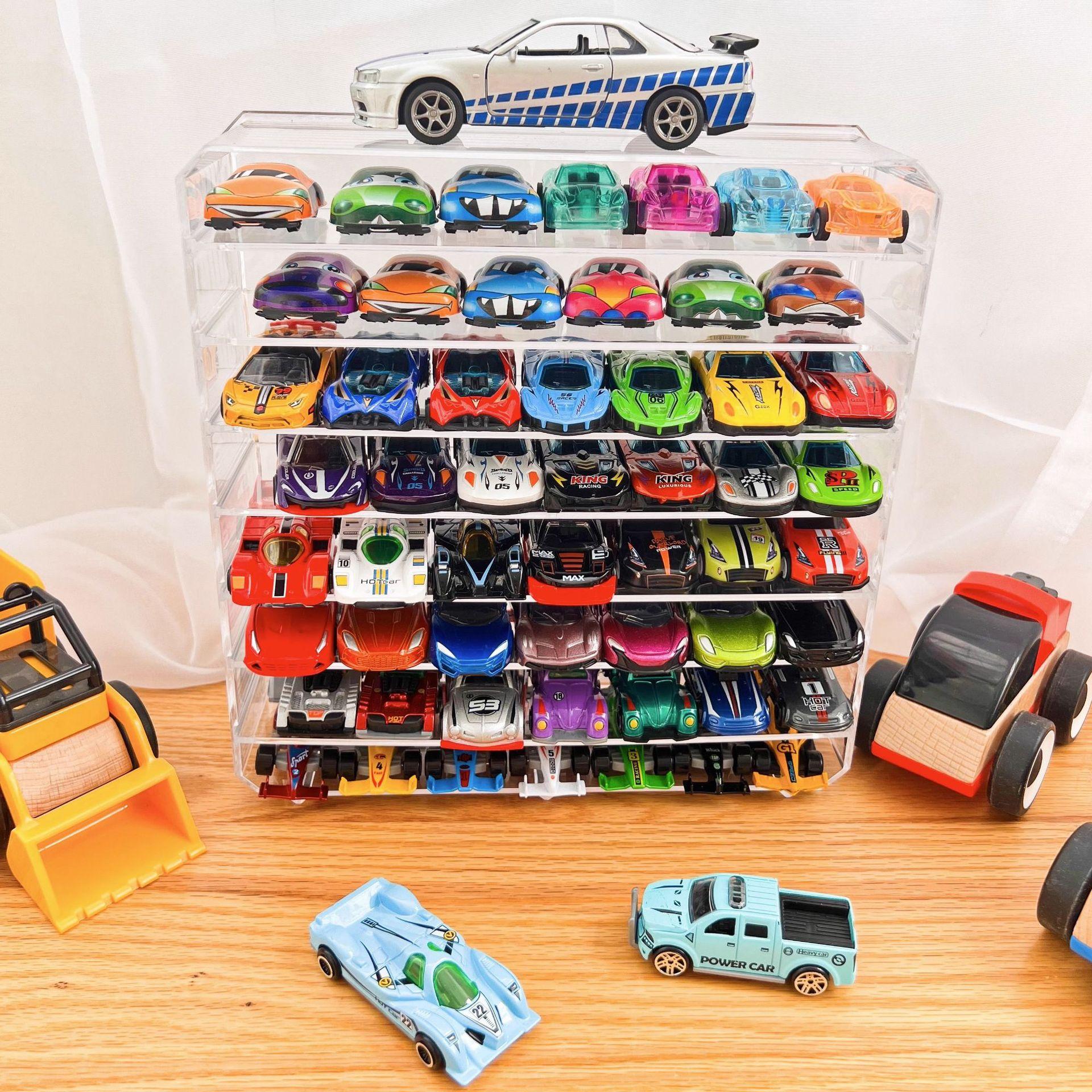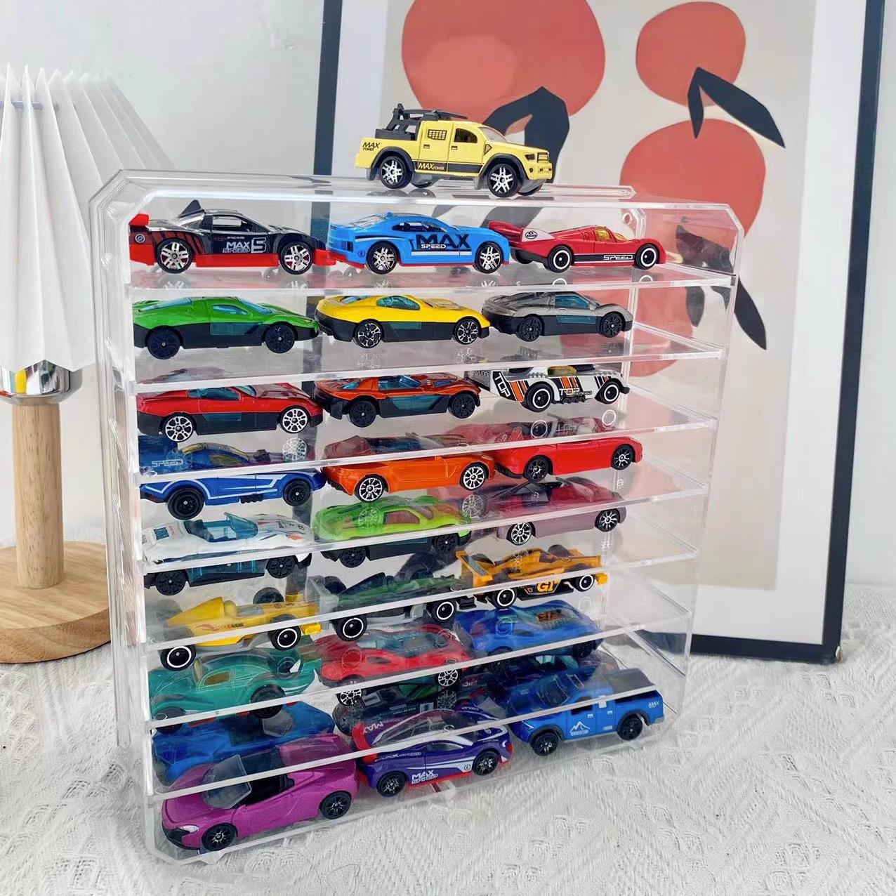 Modelo de Coche de Juguete Caja de Almacenamiento Transparente Coche de Aleación para Niños Partición Multicapa Estante de Almacenamiento de Escritorio Ajustable