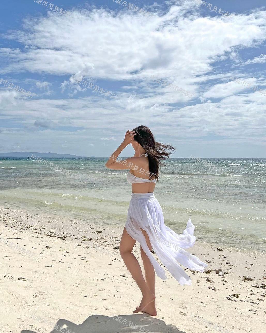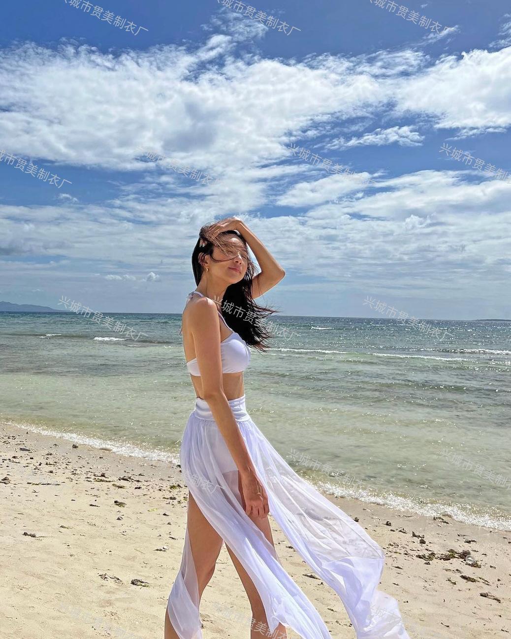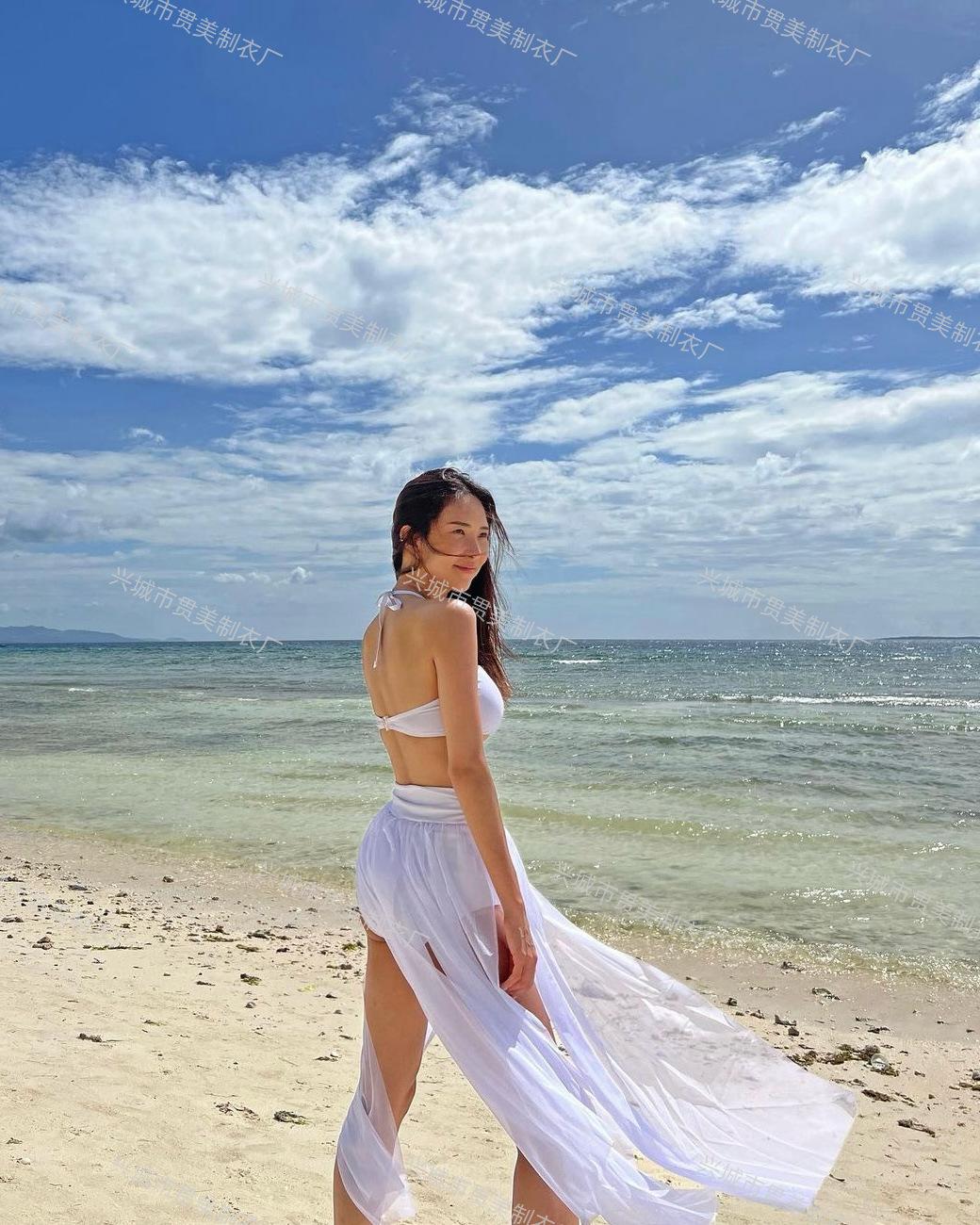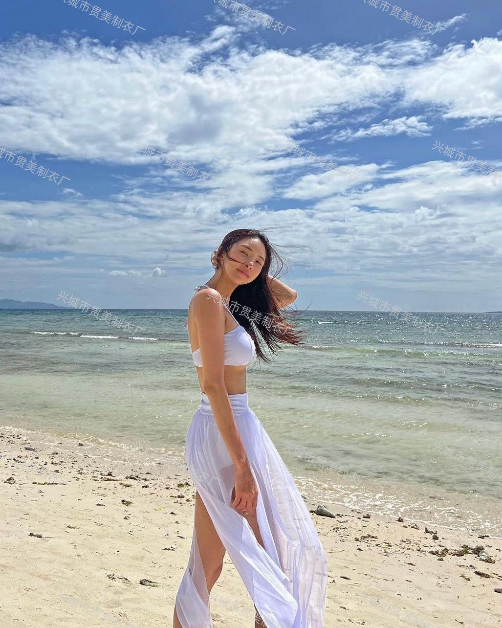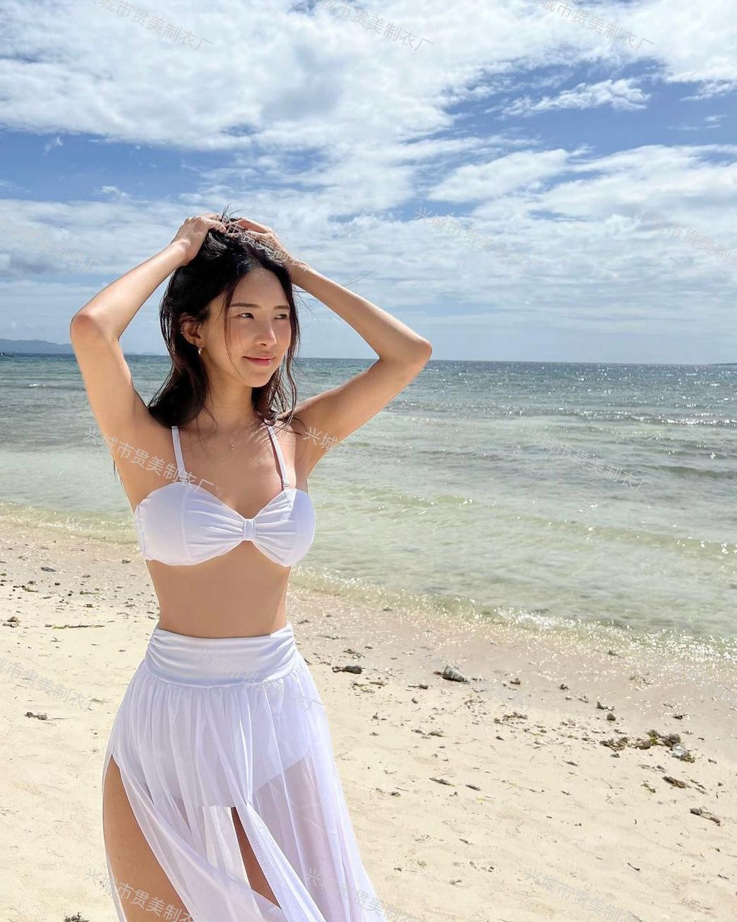 Nuevo bikini de tres puntos dividido estilo europeo y americano sexy de vacaciones en color sólido, traje de baño de aguas termales para mujer