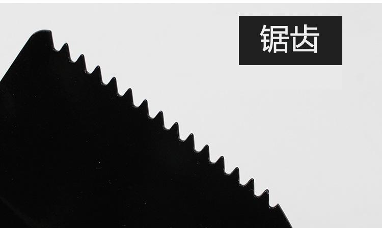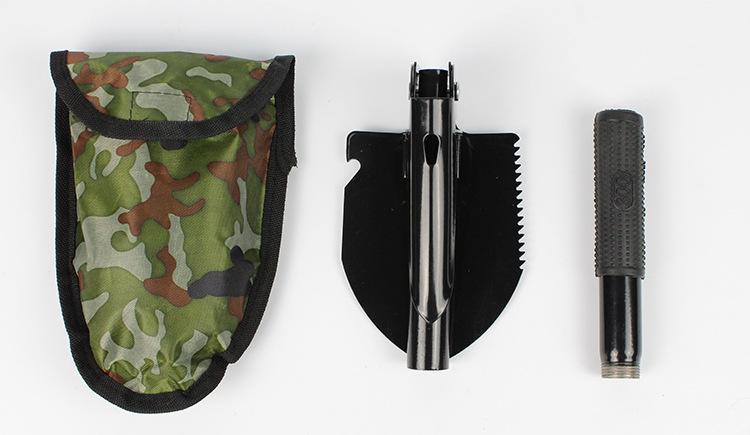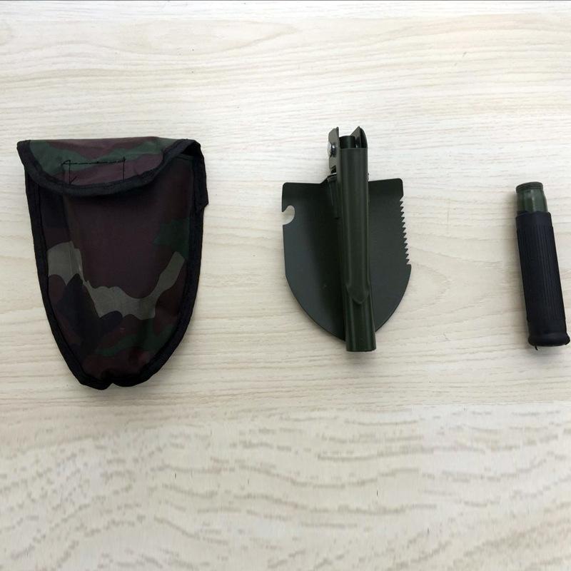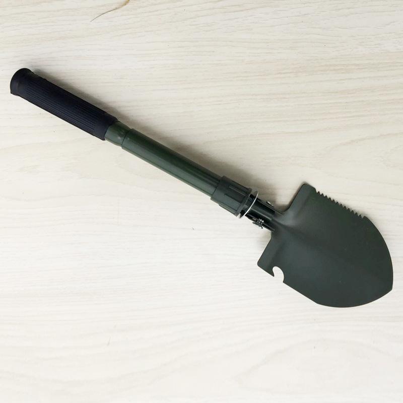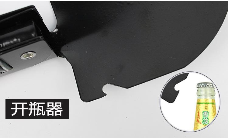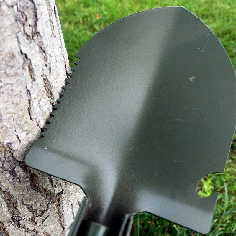 Función: Puede usarse como pala al plegarse y como pico al plegarse. Ya sea que esté cavando un hoyo o excavando la tierra, la pala tiene dientes de sierra y un abridor de botellas, además de una brújula en el extremo del mango (no muy precisa). ¡Disfrute de la comodidad que le brinda la pala militar!