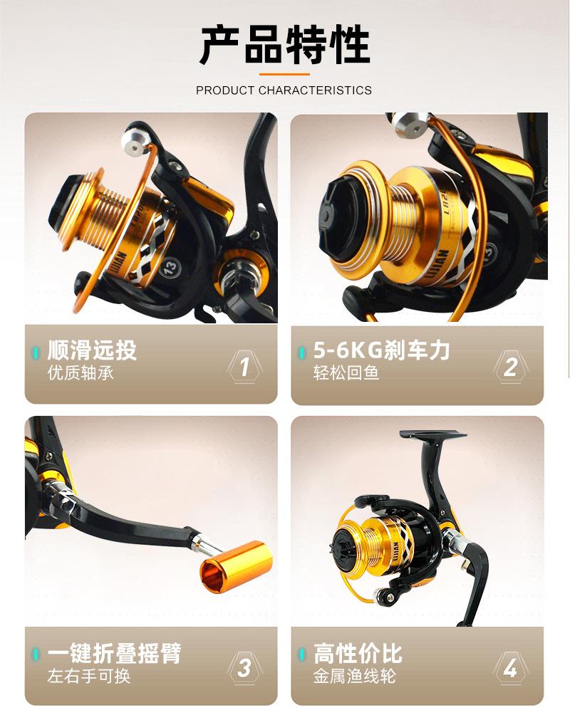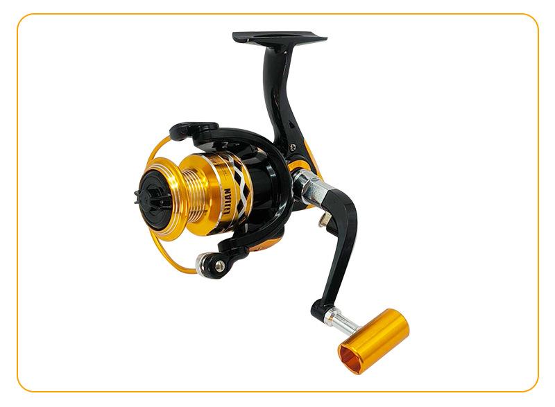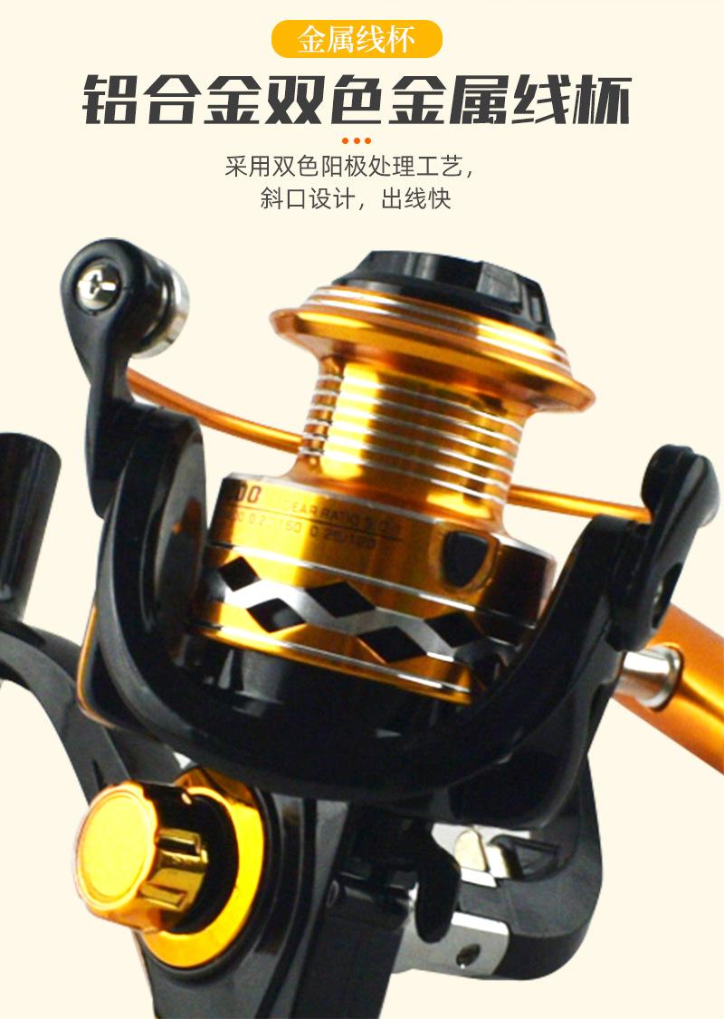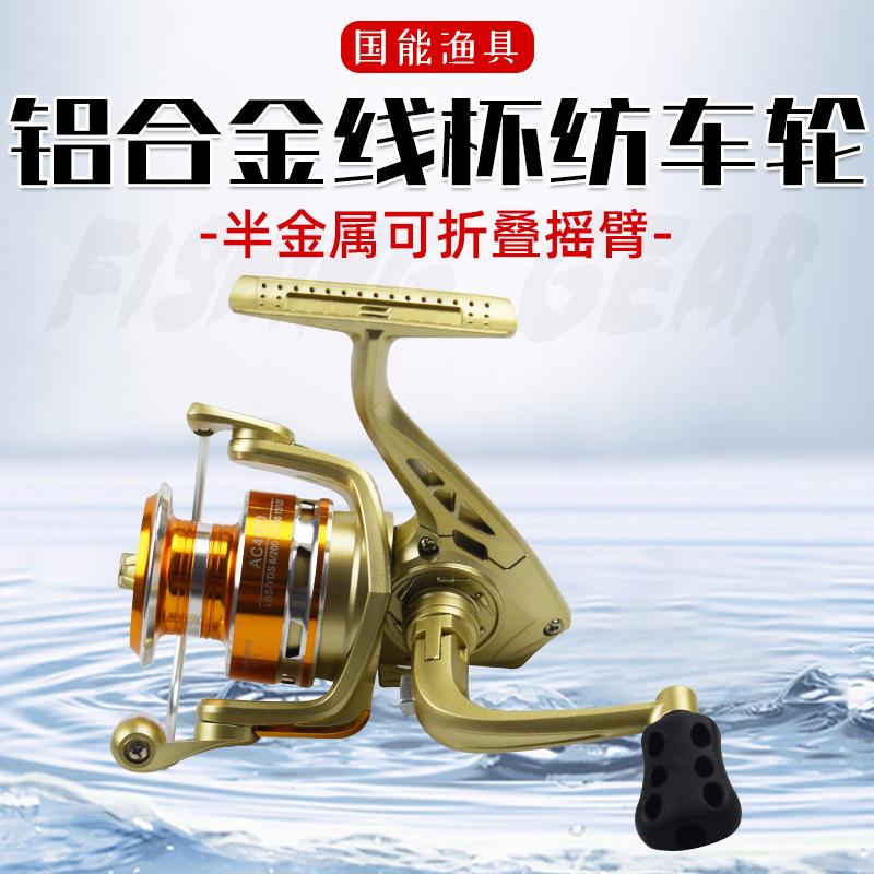 Carrete de pesca con caña de pescar de metal de dos colores, rueda giratoria plegable, carrete de pesca con caña de pescar de fundición rentable, equipo de pesca de bajo precio