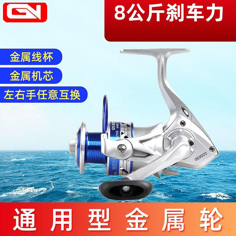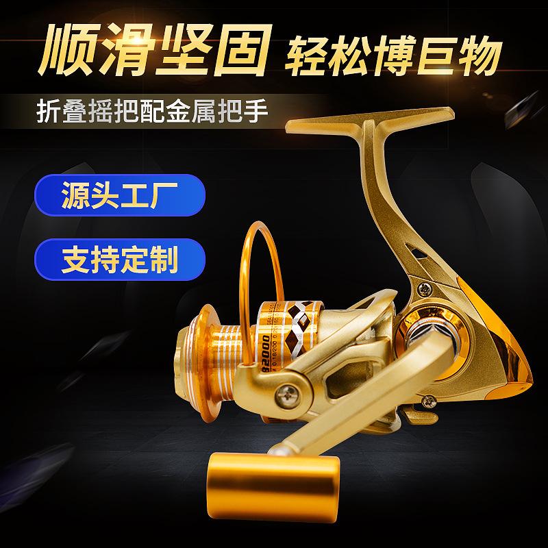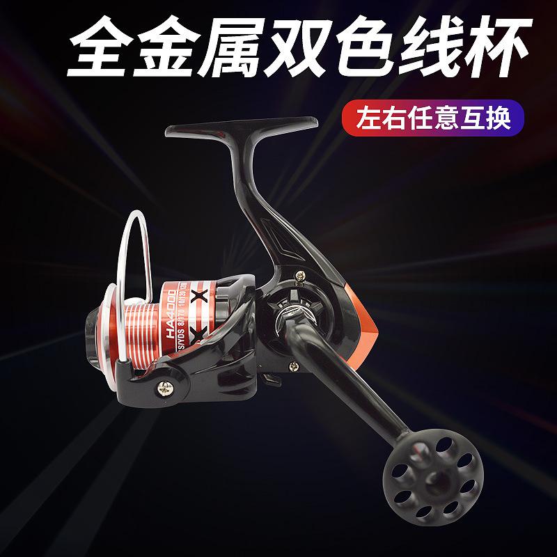 Carrete de pesca giratorio de copa de línea bicolor totalmente metálico transfronterizo, carrete de pesca universal intercambiable a la izquierda y a la derecha, fabricante mayorista de carretes de pesca
