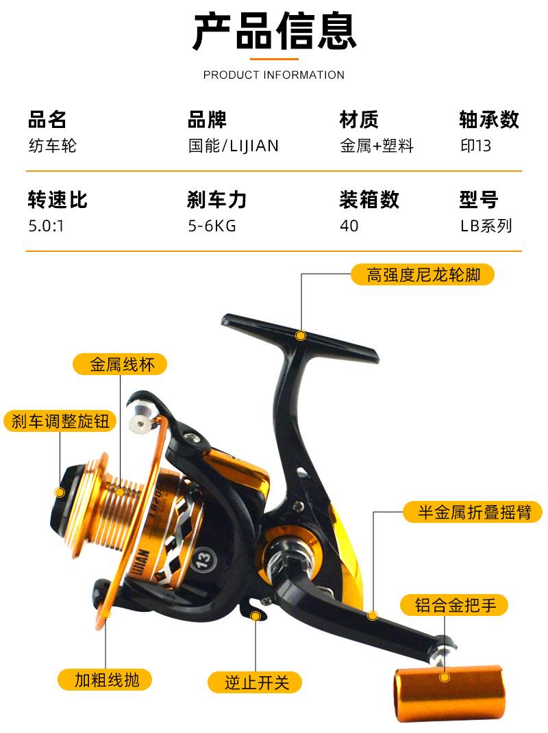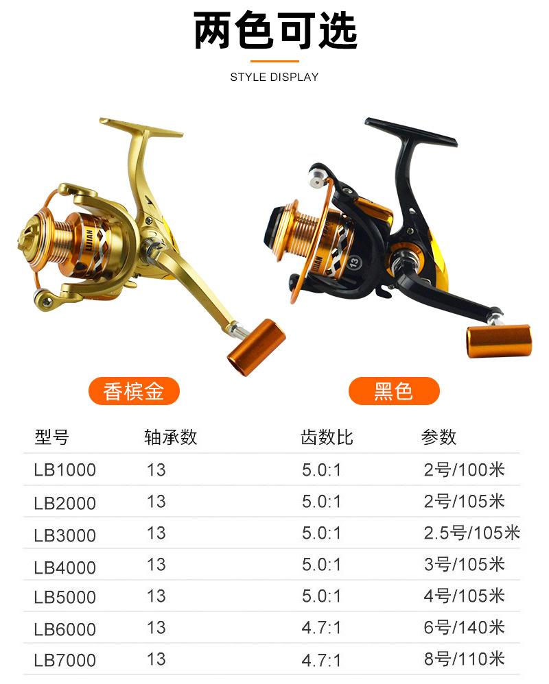 Rueda giratoria de copa de metal transfronteriza LB con mango de aluminio, rueda de línea de pesca, caña de fundición, caña de mar, rueda de pesca, equipo de pesca, pesca al por mayor