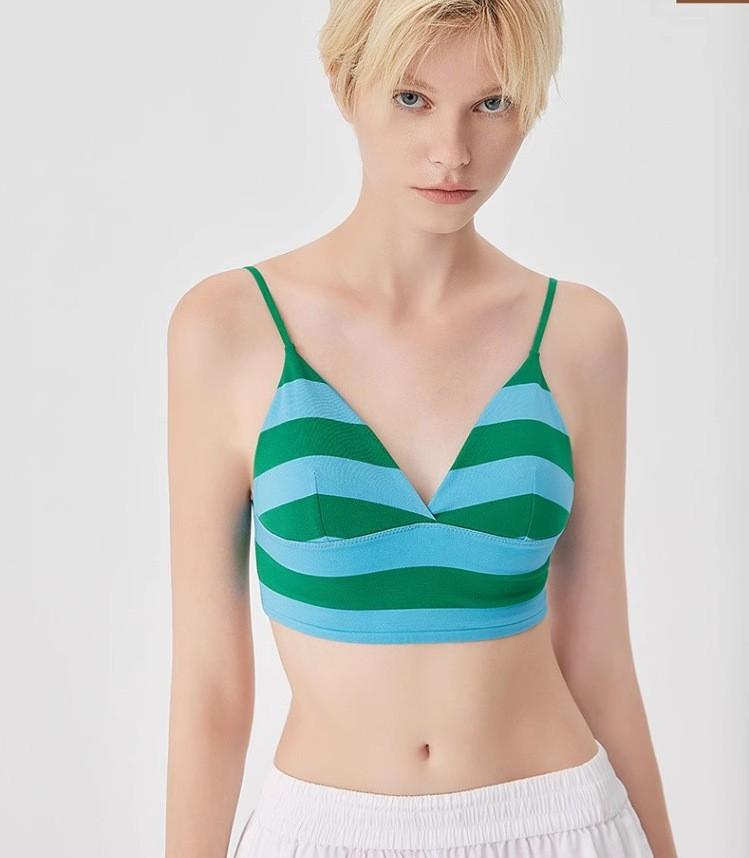 Sujetador deportivo a rayas de colores contrastantes de comercio exterior transfronterizo, ropa de yoga, ropa interior de espalda de belleza, chaleco sexy de moda para mujer de verano