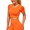 Traje Deportivo Sin Costuras Europeo y Americano para Mujer Verano Cintura Alta Levanta Glúteos Secado Rápido Shorts Ajustados Manga Corta Ropa de Yoga Transfronteriza