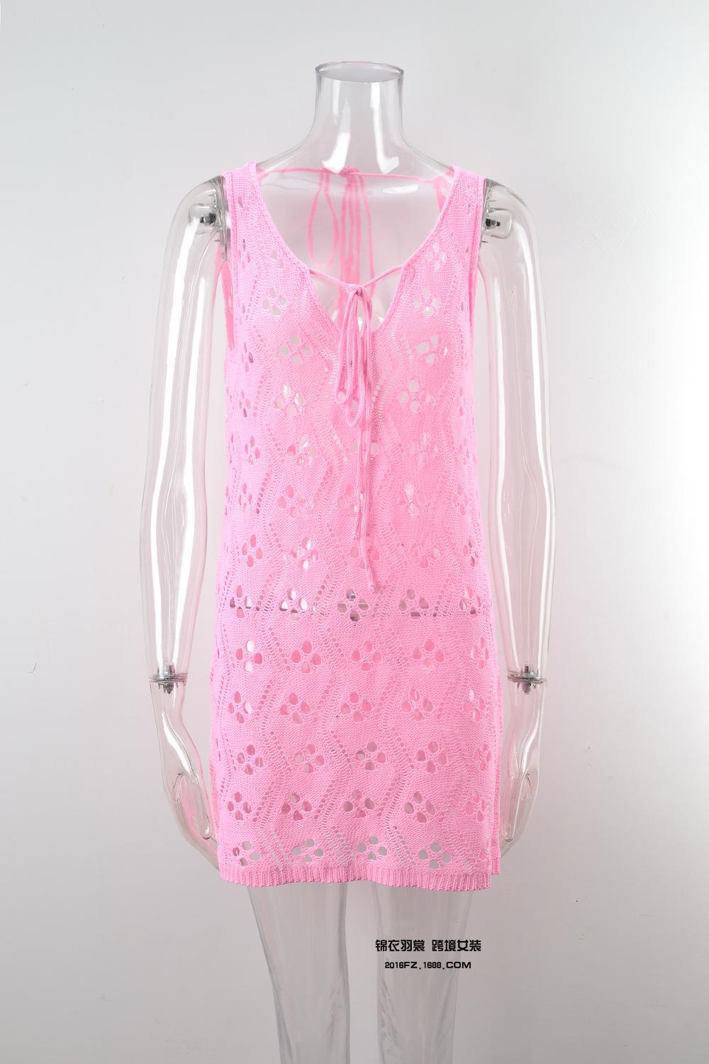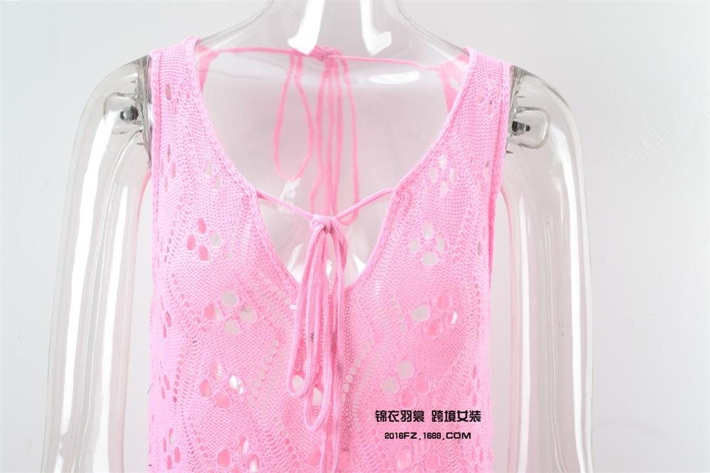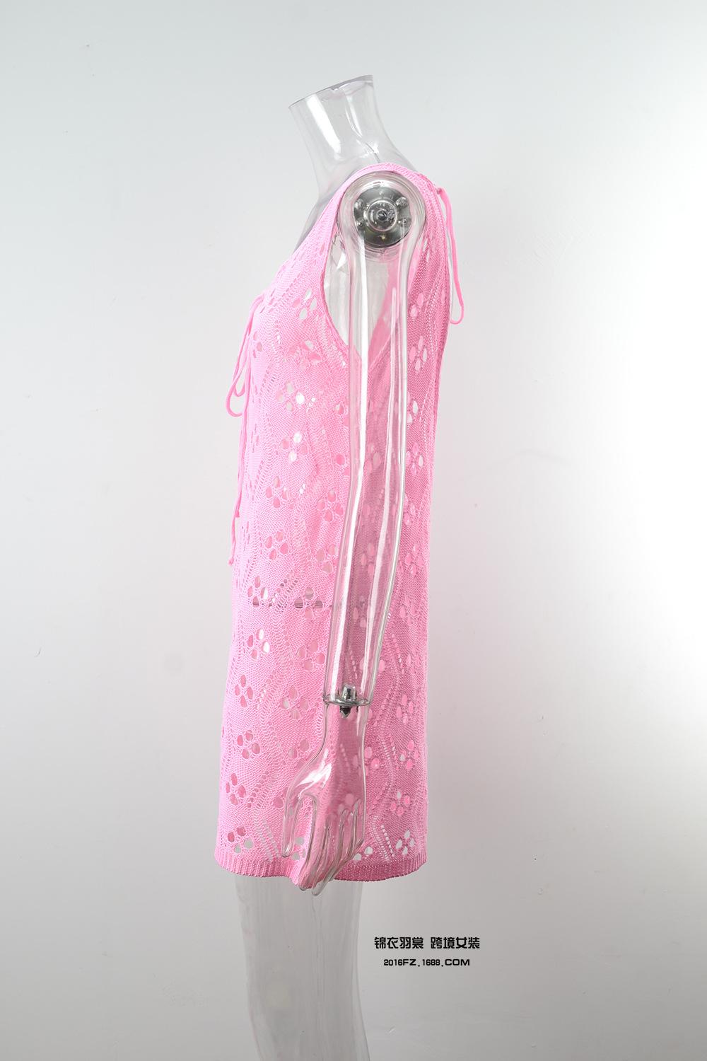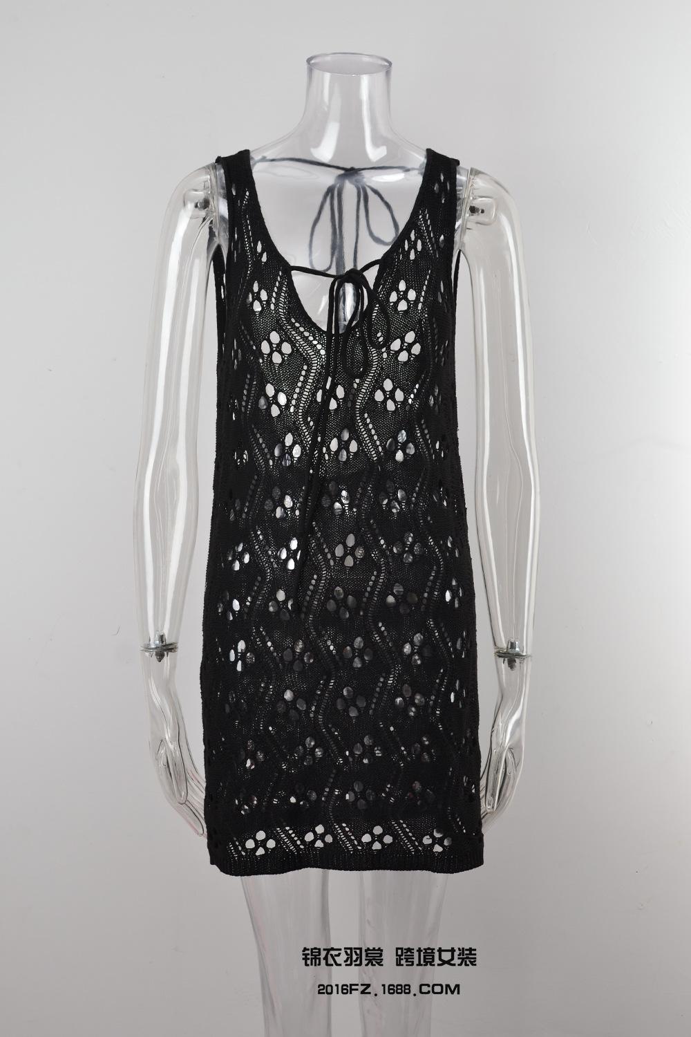 2025 Verano Nuevo Producto Europeo y Americano Comercio Exterior Amazon Ropa de Playa Lazo en el Pecho Hueco Vacaciones Junto al Mar Traje de Baño Cover-Up
