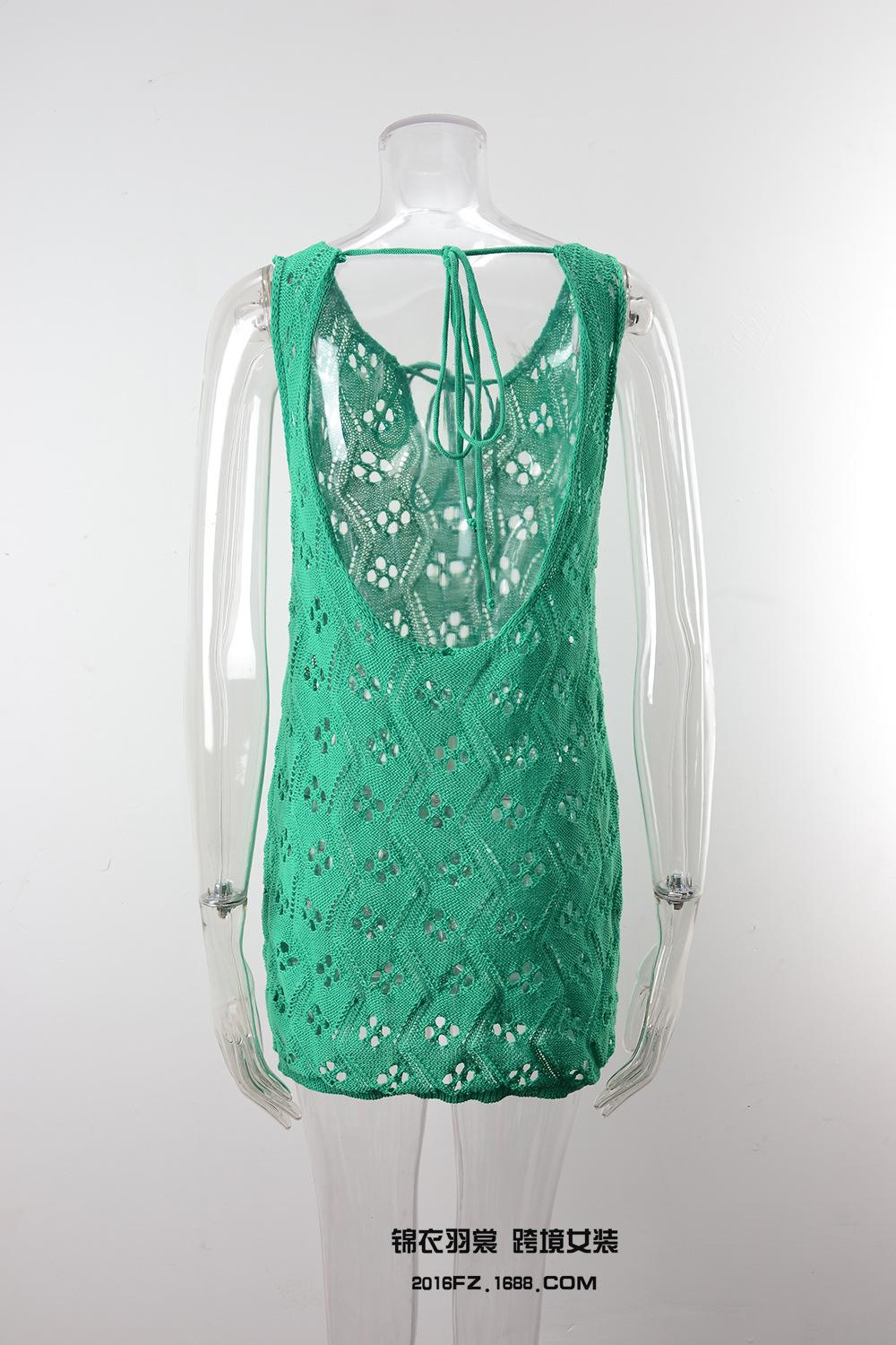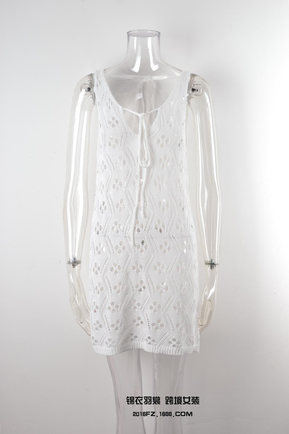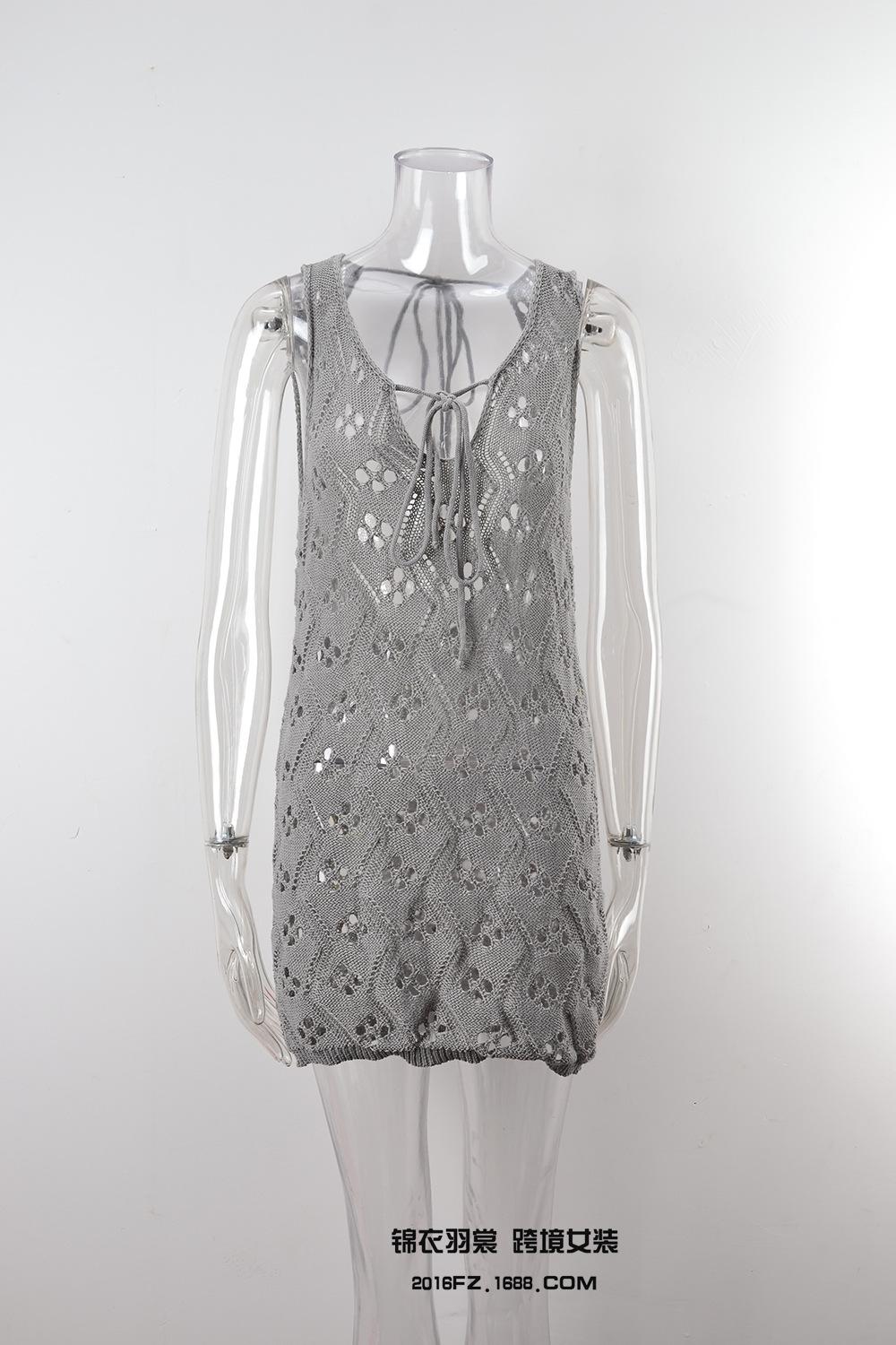 2025 Verano Nuevo Producto Europeo y Americano Comercio Exterior Amazon Ropa de Playa Lazo en el Pecho Hueco Vacaciones Junto al Mar Traje de Baño Cover-Up