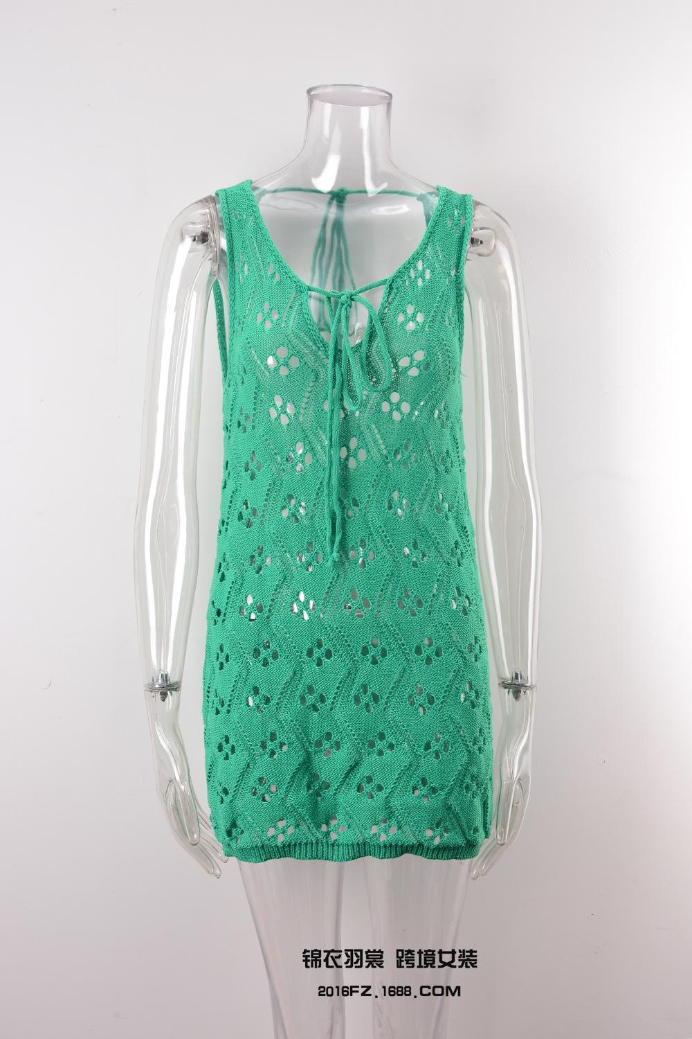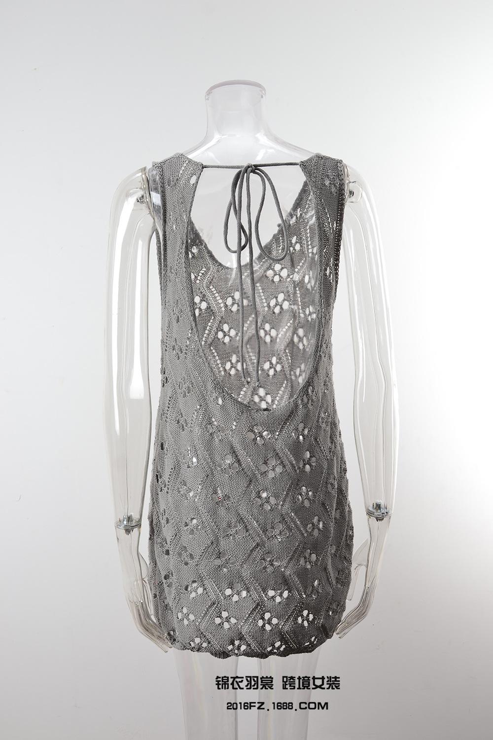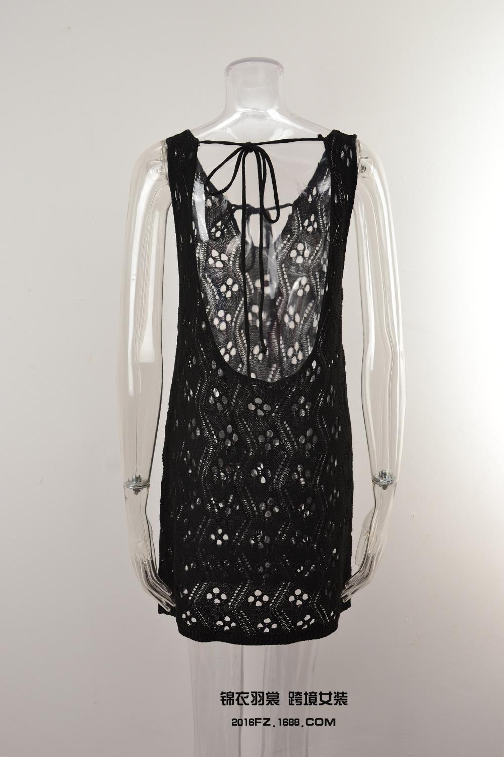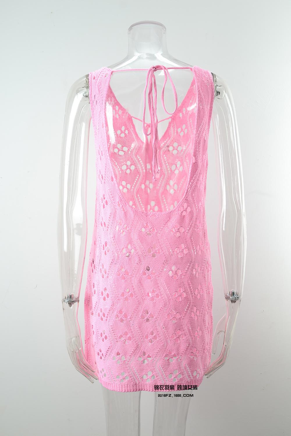 2025 Verano Nuevo Producto Europeo y Americano Comercio Exterior Amazon Ropa de Playa Lazo en el Pecho Hueco Vacaciones Junto al Mar Traje de Baño Cover-Up