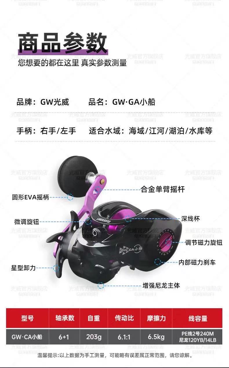 Guangwei GWCA. Rueda de caída de barco Caña Luya caña de lance carrete de línea de pesca carrete de pesca carrete de línea de lance remoto freno magnético