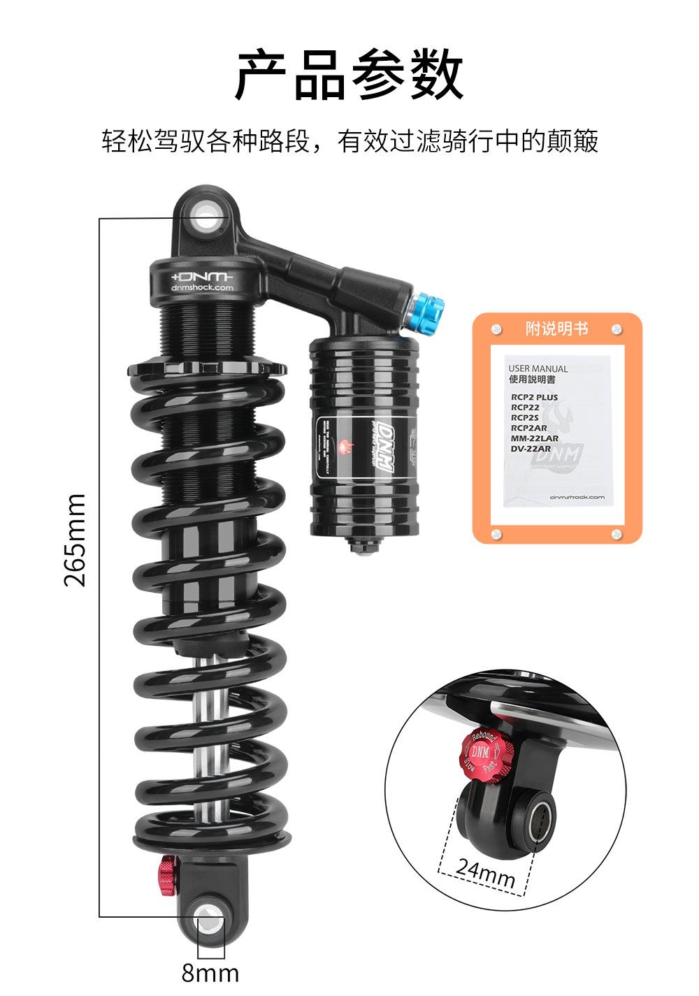 Amortiguador trasero de resorte de aceite para motocicleta eléctrica Taiwan DNM 265mm amortiguador todoterreno ajuste de alta y baja velocidad RCP-2PLUS