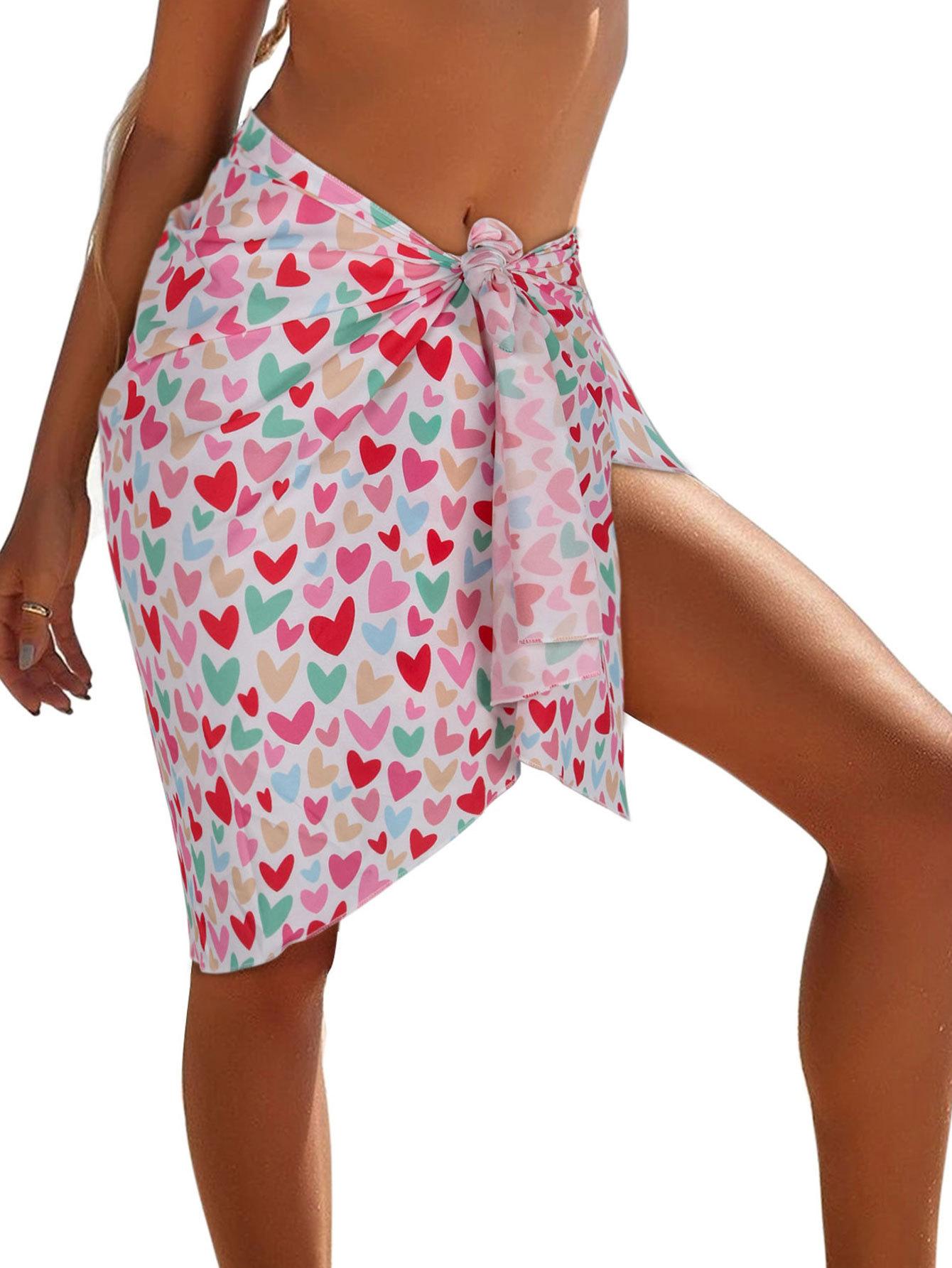 Ropa Sexy de Chifón Estampado para Playa y Protección Solar Transfronteriza Europea y Americana, Hueca, Cubre Traje de Baño Medio Bikini, Falda para Mujer