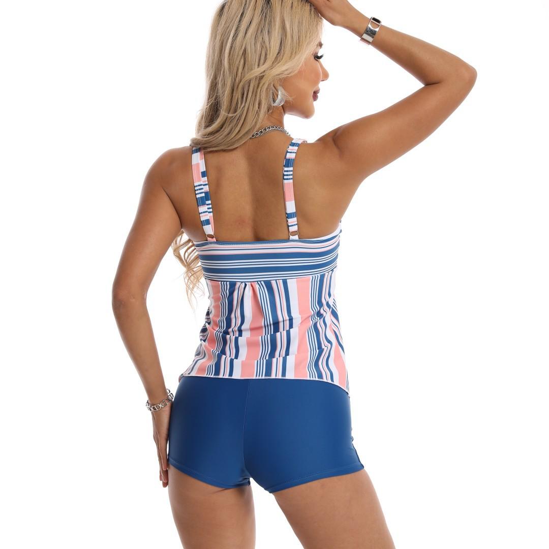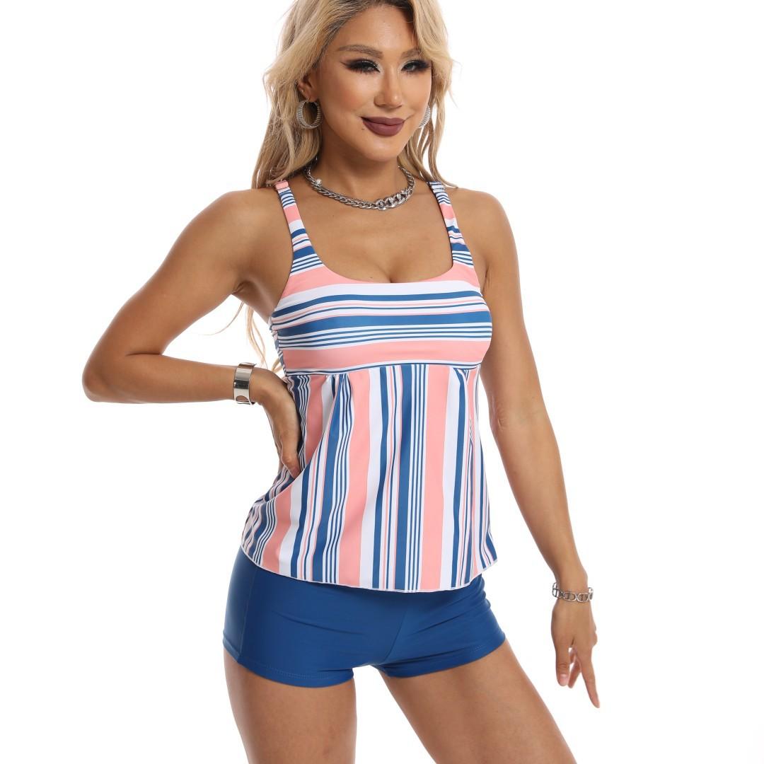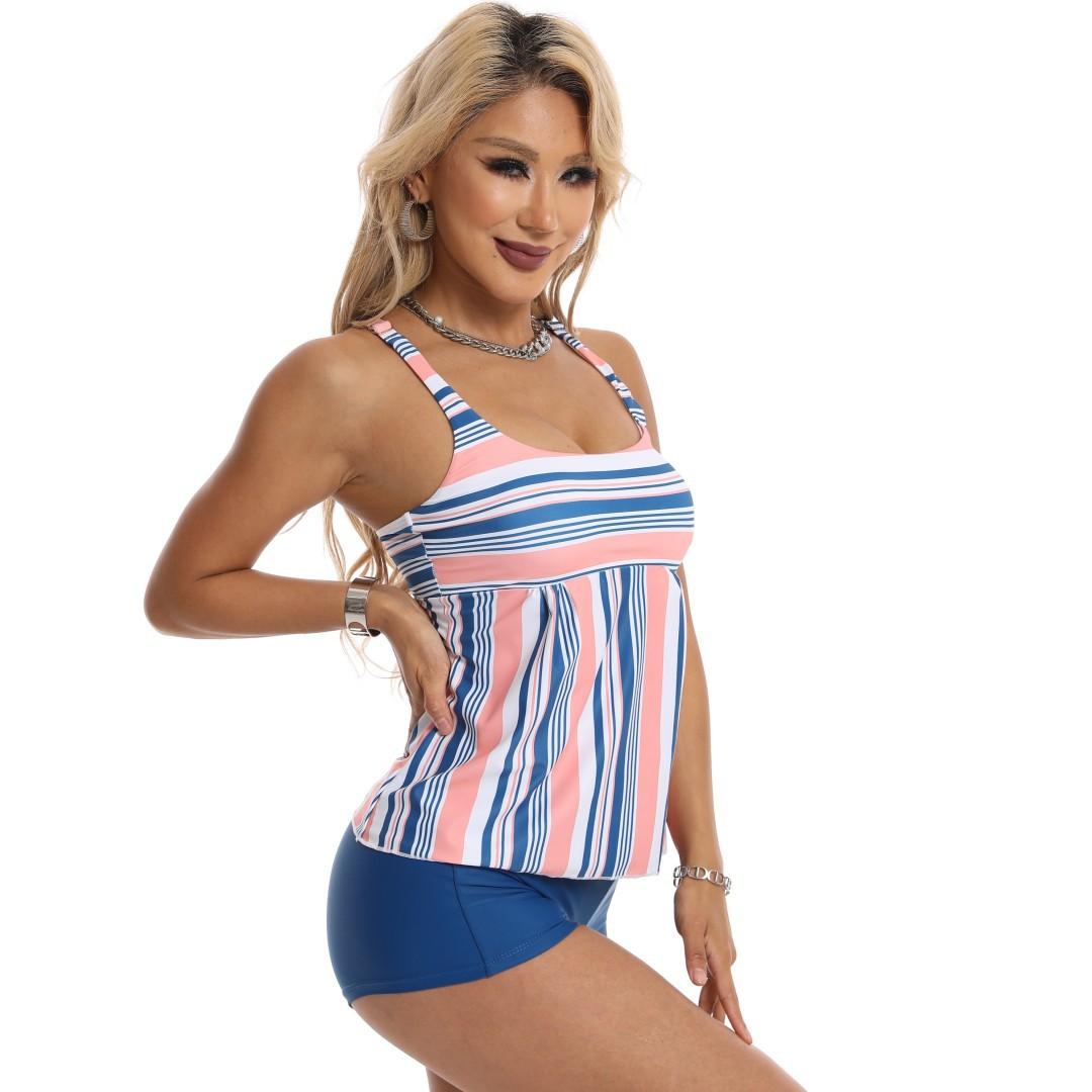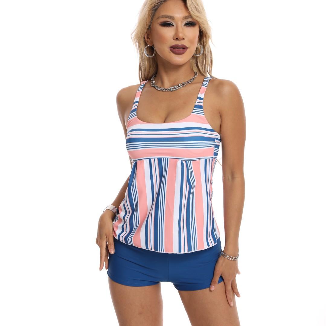 Amazon 2024 Nuevo Tankini Estampado de Rayas Cubre Vientre Delgado Talla Grande Dividido Traje de Baño Plano para Mujeres Bikini