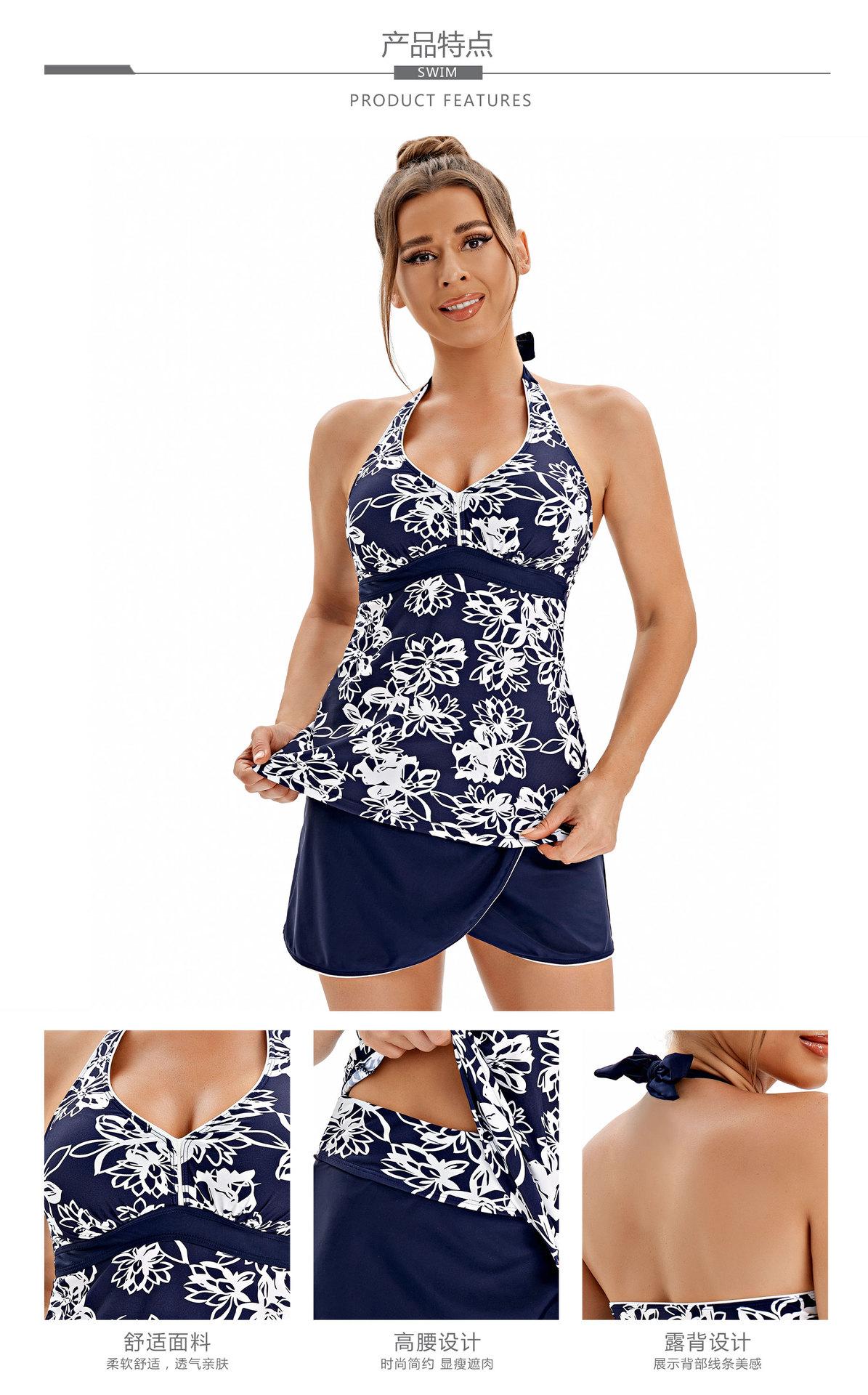 2022 Exportación Transfronteriza Europea y Americana Talla Grande Estampado Dividido Espalda Descubierta Encaje con Cordones Traje de Baño Sexy Cubre Vientre Cintura Alta