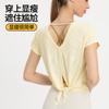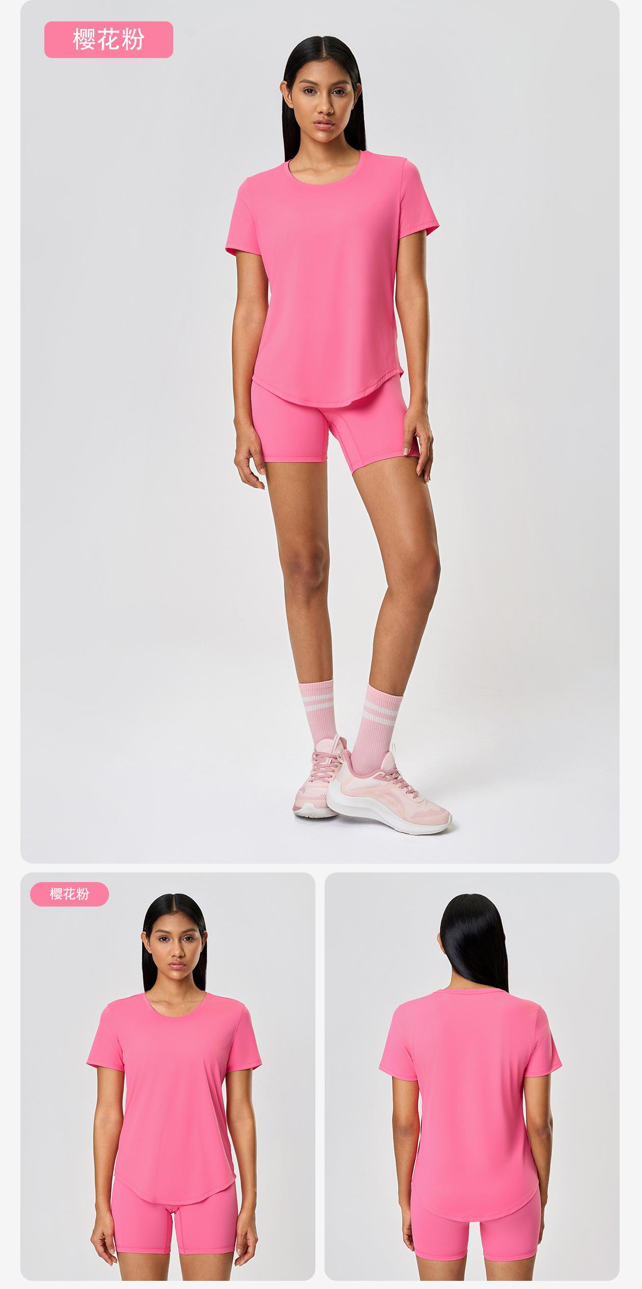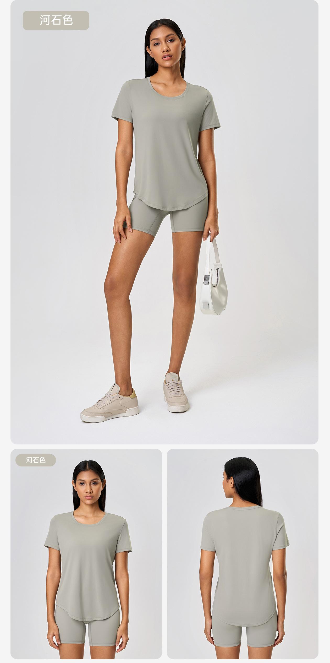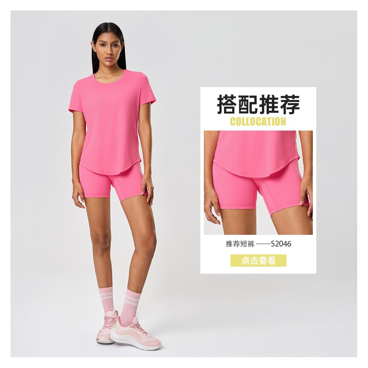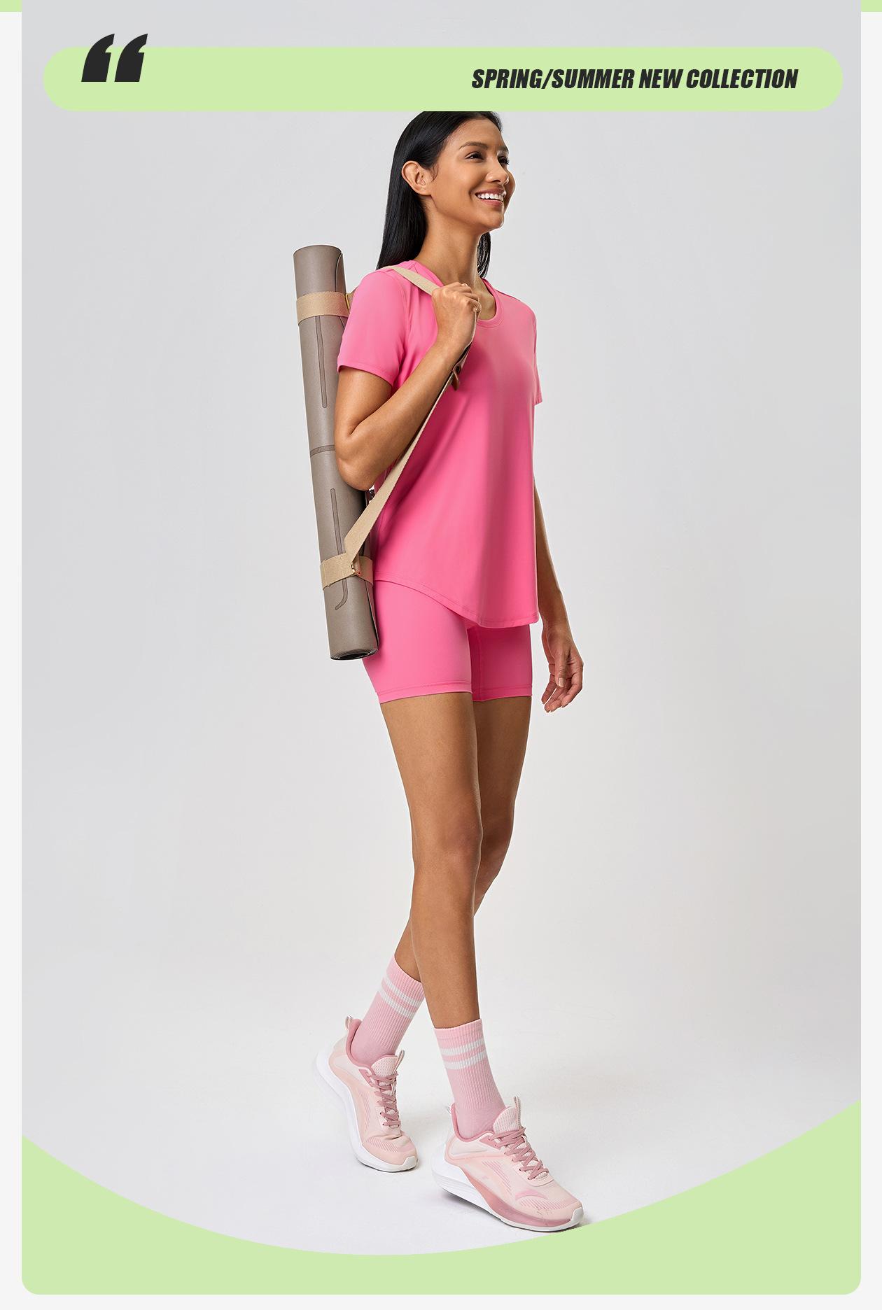 Camiseta de yoga holgada de manga corta para mujer, transpirable, de secado rápido, para verano, DS075