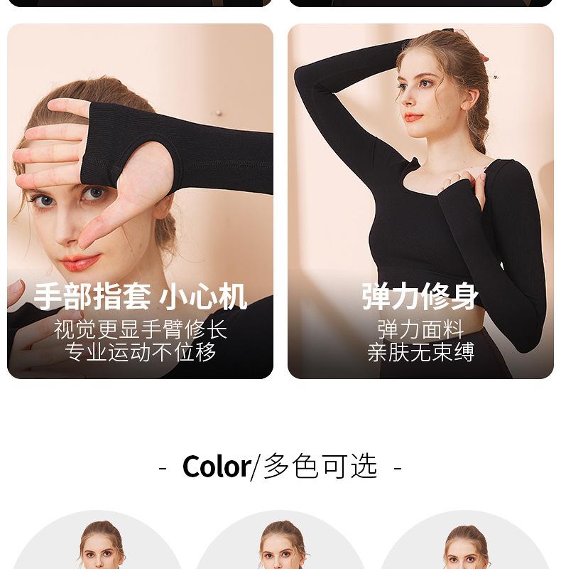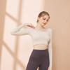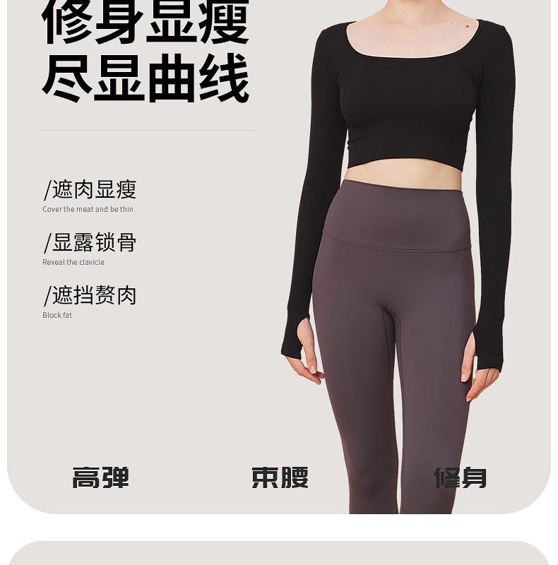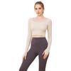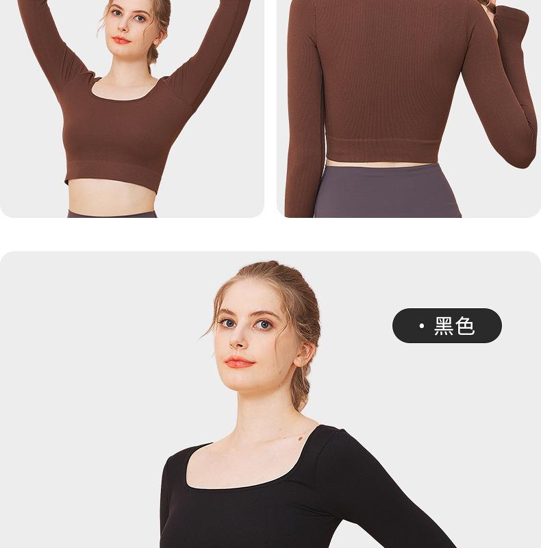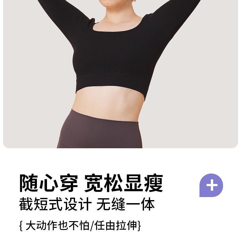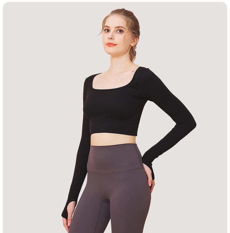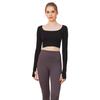 Ropa de yoga de otoño e invierno de fábrica, cintura corta, fitness, manga larga, para mujer, top de yoga deportivo simple negro sin costuras para mujer