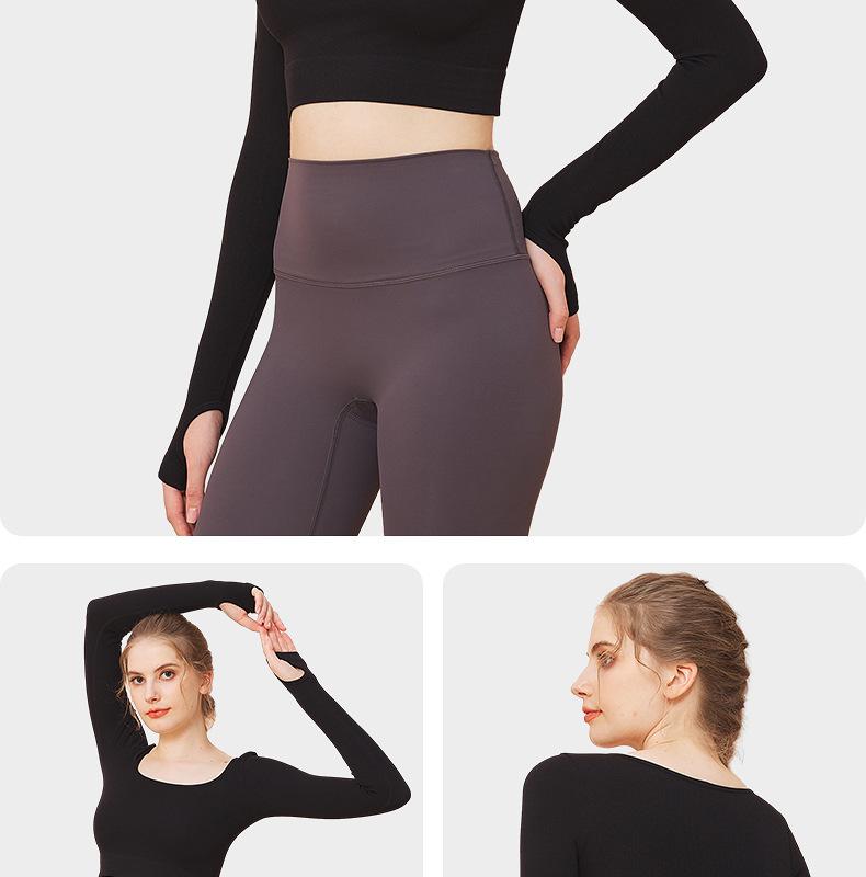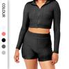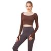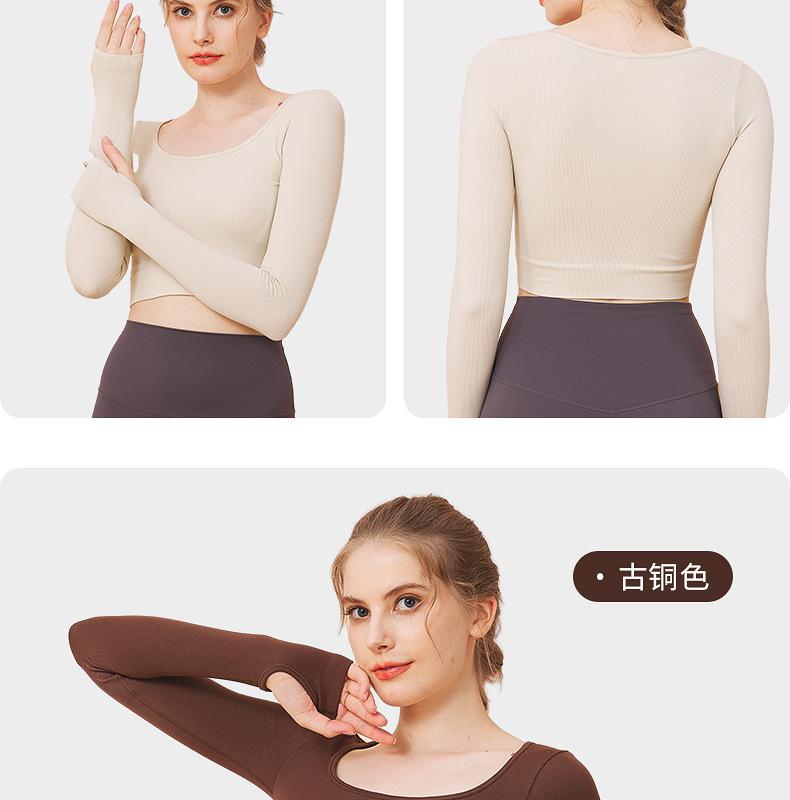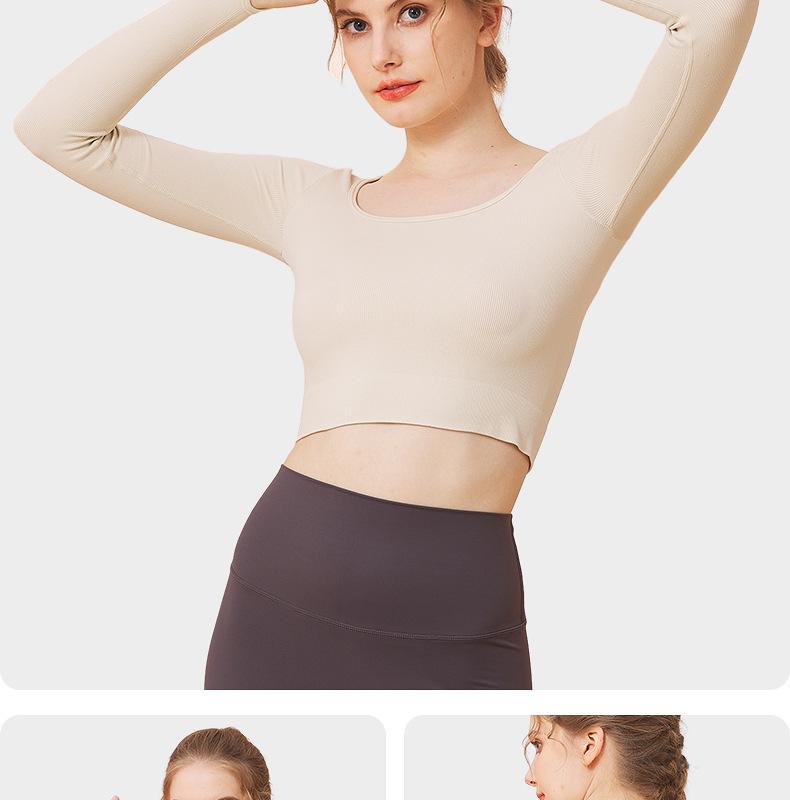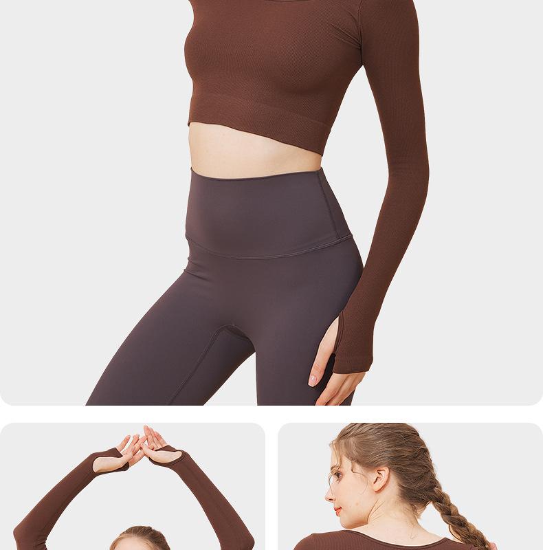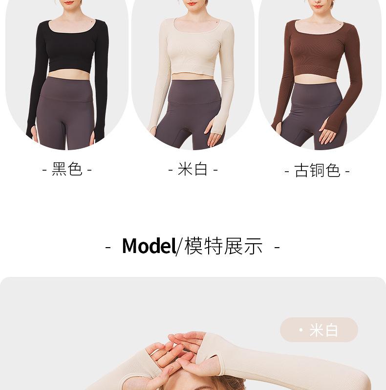 Ropa de yoga de otoño e invierno de fábrica, cintura corta, fitness, manga larga, para mujer, top de yoga deportivo simple negro sin costuras para mujer