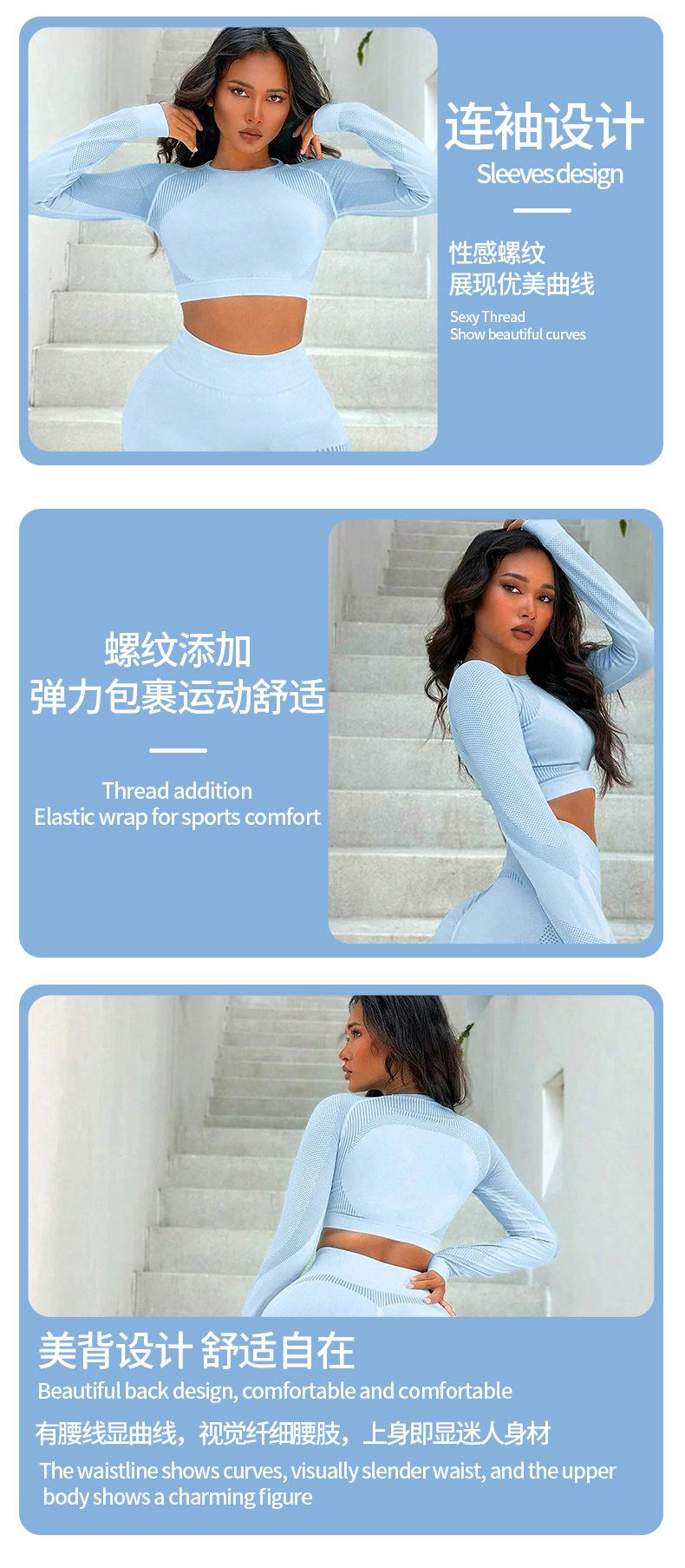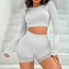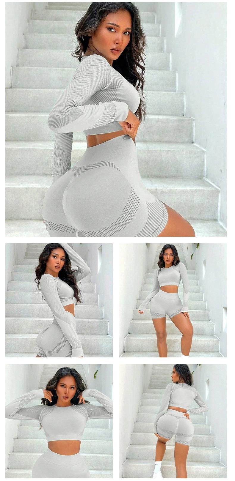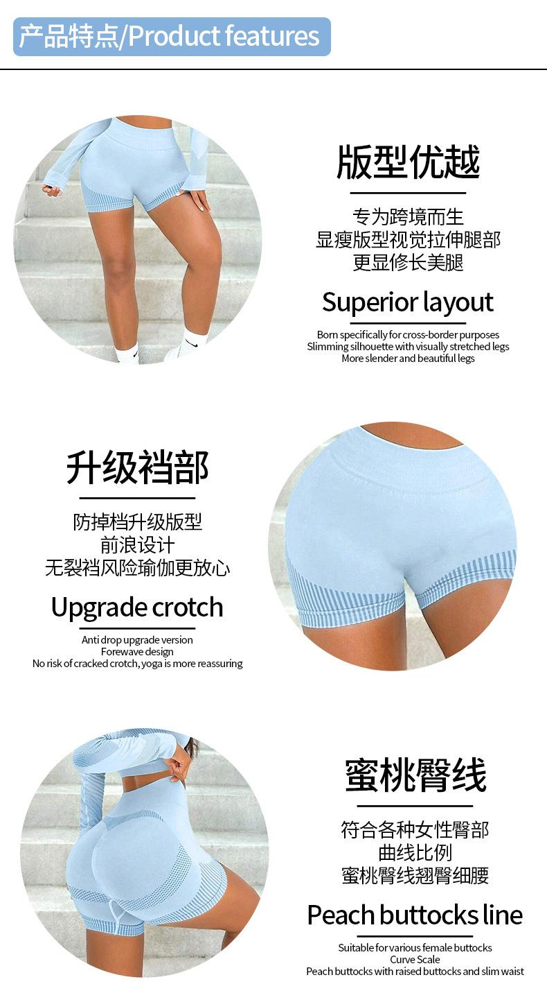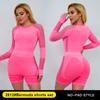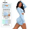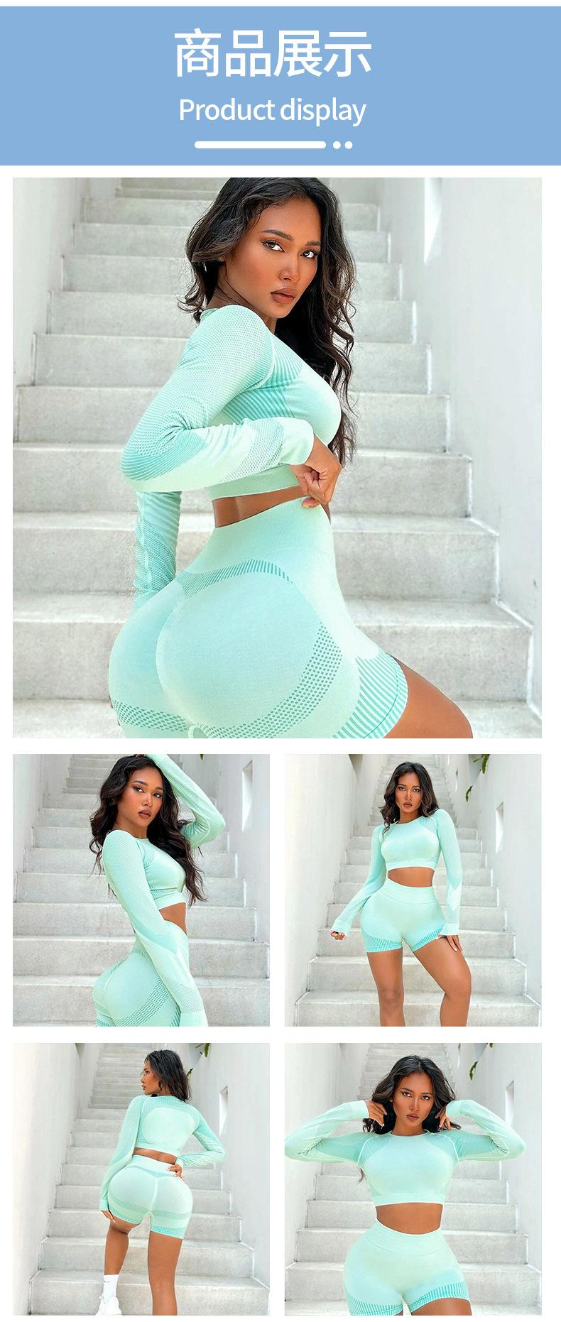 Traje de fitness sin costuras transfronterizo europeo y americano, color melocotón, cintura alta, fitness, manga larga, pantalones cortos deportivos de yoga de tres puntos, traje para mujer