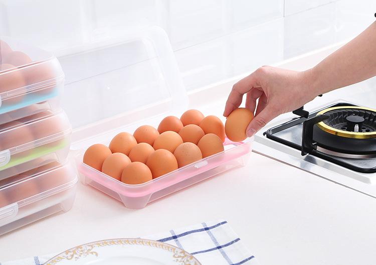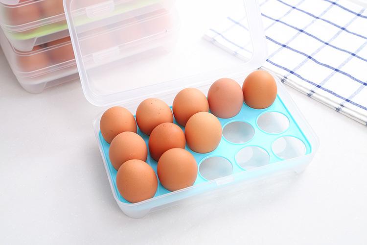Caja de huevos de cocina con 15 compartimentos, refrigerador, caja para mantener frescos los huevos, caja portátil para picnic, caja de huevos de plástico, bandeja para huevos, caja para huevos